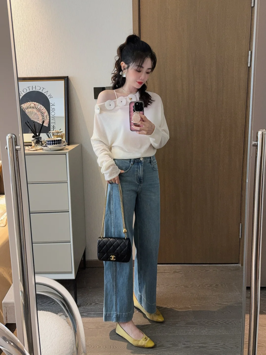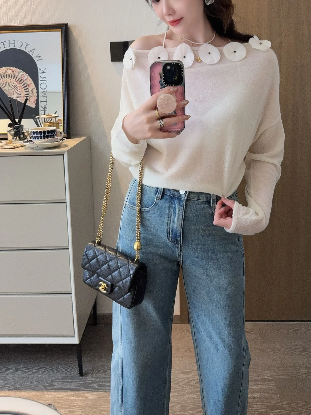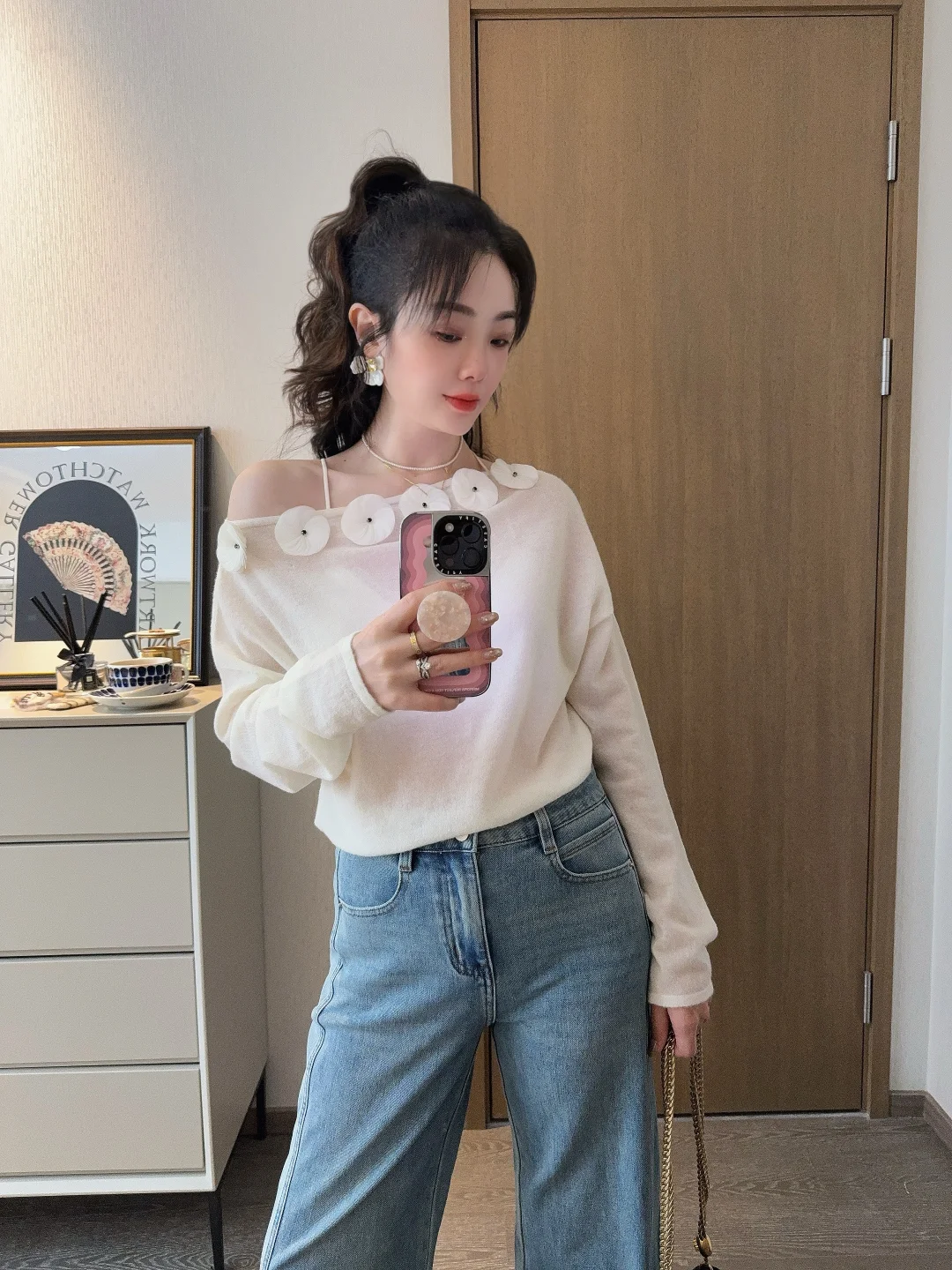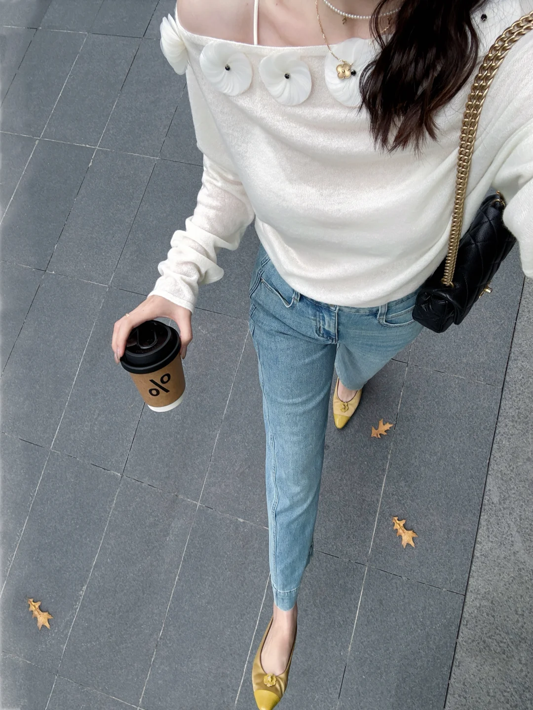 心心念念的漂亮小花毛衣还是拿下了,咱就是说秋冬脱掉外套咱也可以很惊艳!!我爱一切白色毛衣!!