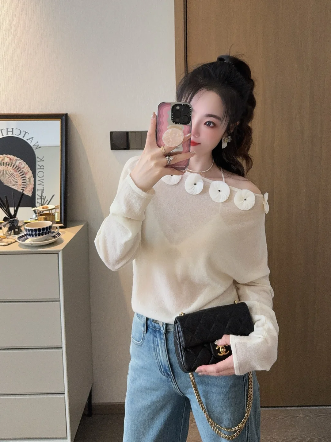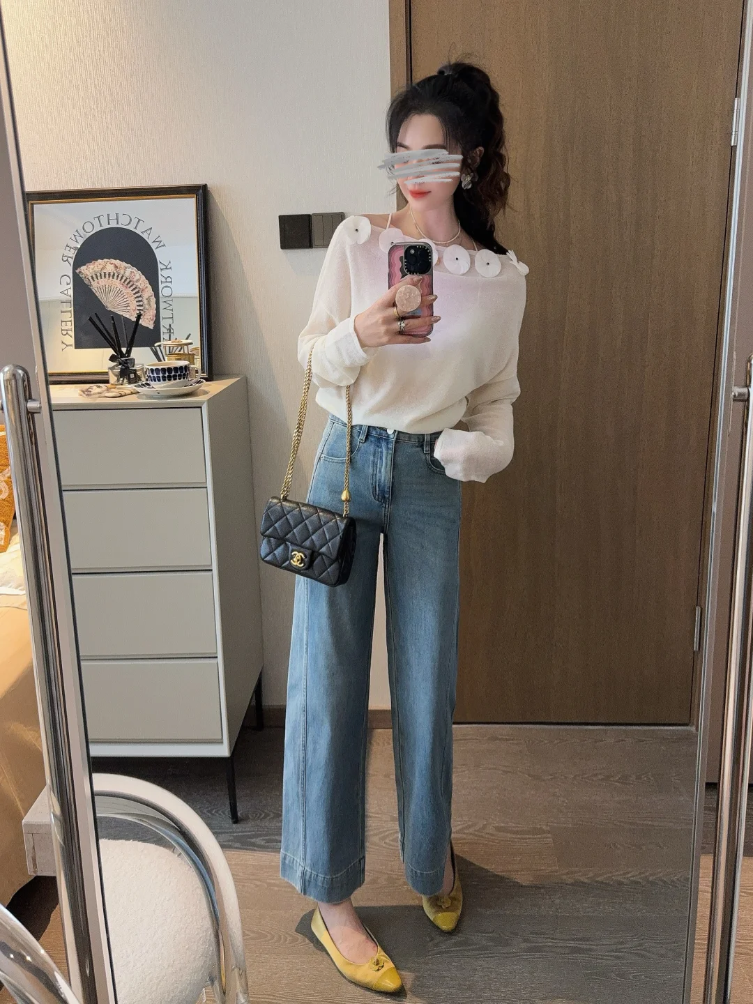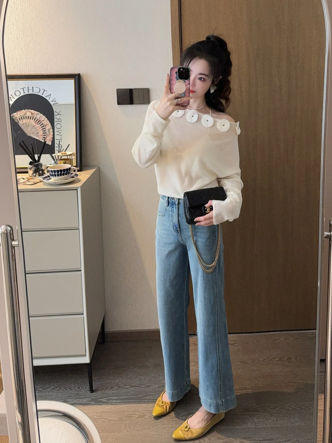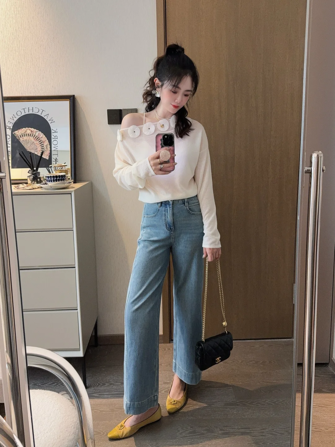 心心念念的漂亮小花毛衣还是拿下了,咱就是说秋冬脱掉外套咱也可以很惊艳!!我爱一切白色毛衣!!