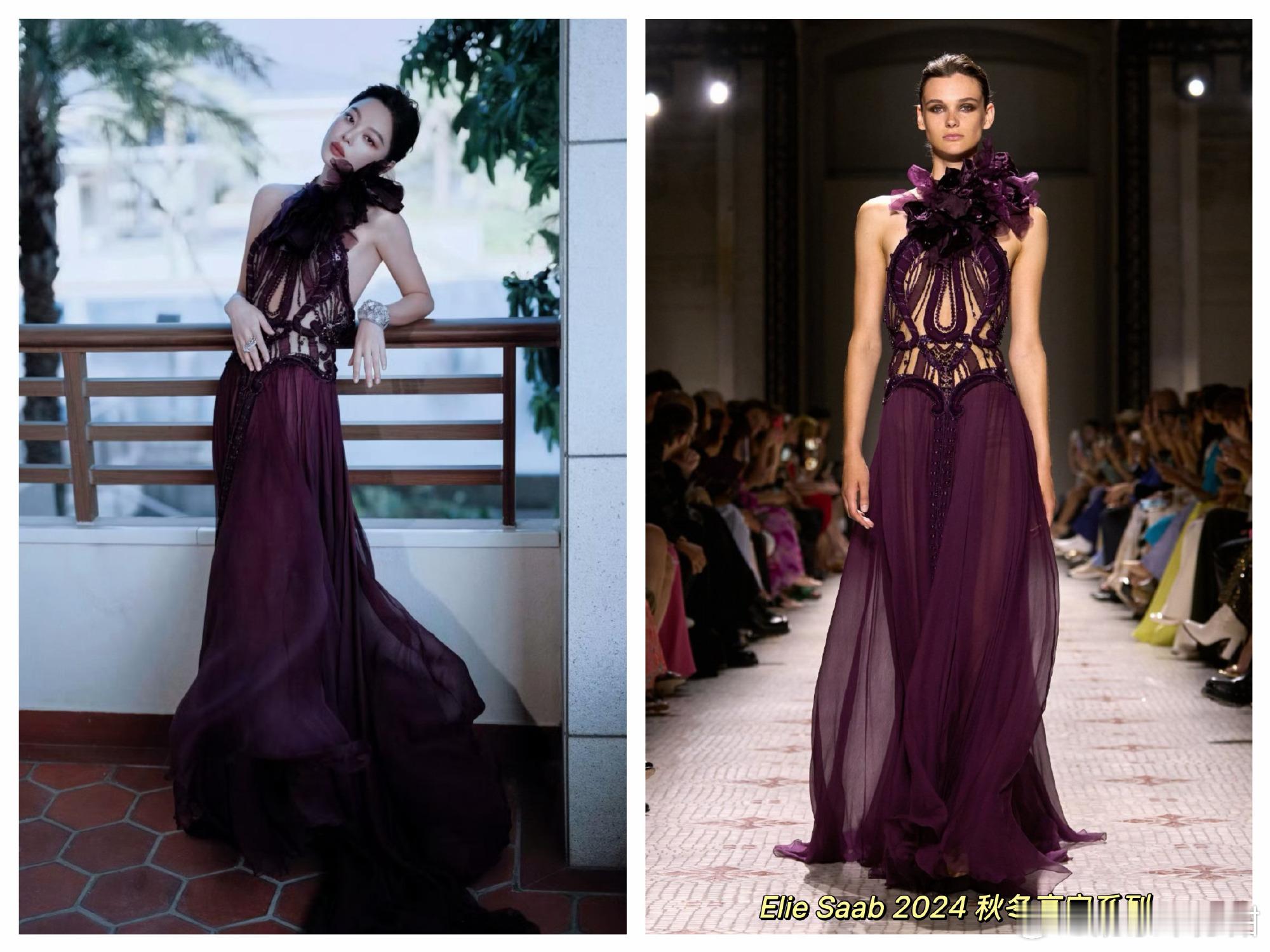 辛芷蕾 今日 造型,身穿Elie Saab 2024秋冬高定礼服,佩戴CHANEL臻品珠宝,紫色立体花朵纱裙包裹曼妙身姿,属于威尼斯影后排面和魅力。💜💕