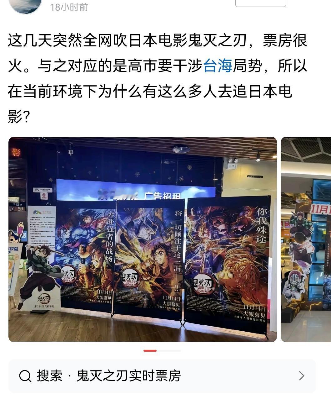 因为中日两国关系紧张,日本电影鬼灭之刃被喷了,看鬼灭之刃的中国人更是被喷了,好像看一部日本电影,就是卖国贼了一样。 这是极端化了,没必要。 当年,中日两国打仗,也没有到全盘否定对方所有的程度,有些往来该有的还是要有。 现在更不需要。 我们没必要全盘否定日本,更没必要全面妖魔化他们。 我们不可能把日本人全消灭完,之后必然要有合作的,把对立拉满,那真就是不死不休了,不符合我们的利益。 并且,引进日本电影的是中国公司,票房挣钱了,中国人也赚钱的,有时候赚的更多,这就是合作共赢。 国家没有禁止,还在允许引进播放,又为什么不让人看呐? 我的态度是,大仇肯定要报,但是我们不可能把日本人荡平,那么剩下的日本人,还是要和我们合作,那么在现在,我们自己没必要把所有的路都堵死。 啥也不懂的时候,那就跟着国家走,国家抵制我抵制,国家合作我合作。 日本评论中国 鬼灭之刃 怒日本人 ⻤灭之刃 日本老外 其鬼灭之刃 鬼灭动漫