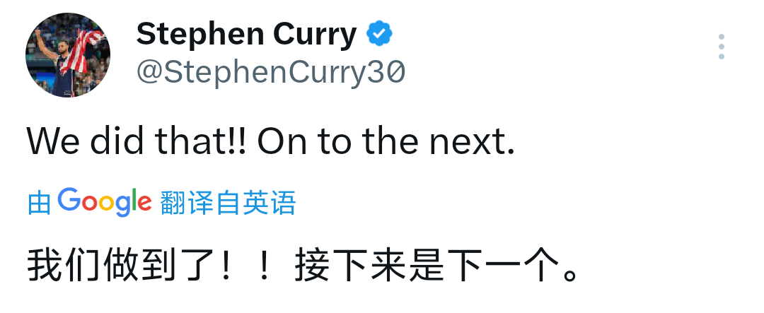 斯蒂芬·库里发文:我们做到了!接下来是下一个对手