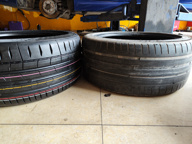 Ps4换MC7 4条PS4服役4年跑了8万公里,功成身退~新订4条MC7(255-40-18R应该是全国第一批出厂),看看新产品能否比老战士更强悍~跑了40公里性能上没啥感觉,噪音肯定是小很多了,初次体验很棒