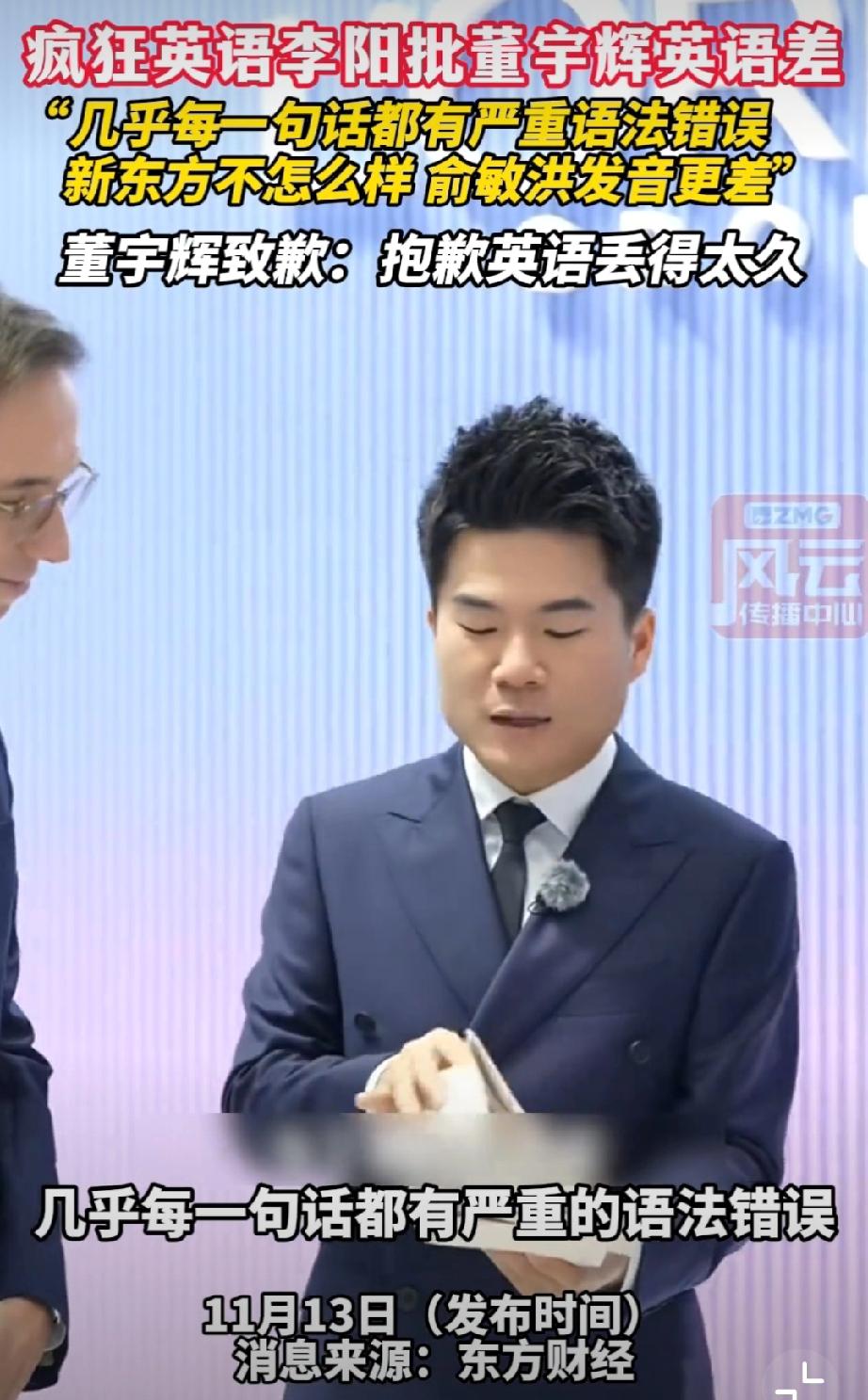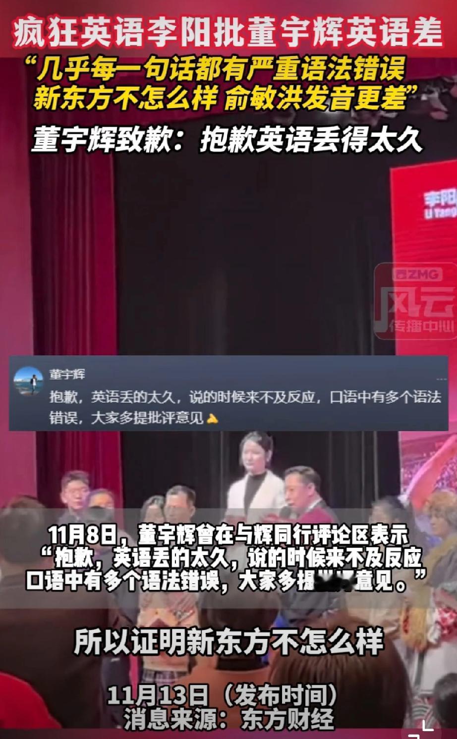 董宇辉致歉口语多个语法错误。 董宇辉的演讲,跟国外的外交官交流,几乎每一句话都有严重的语法错误,而且发音特别怪 董宇辉不是专门教英语的出来的吗?怎么会这样?我还以为假新闻,结果11月8日,董宇辉在与辉同行评论区表示,“抱歉,英语丢的太久,说的时候来不及反应,口语中有多个语法错误,大家多提批评意见。”各位网友,您怎么看?董宇辉带货技巧 董宇辉金句良言 董宇辉带货日记