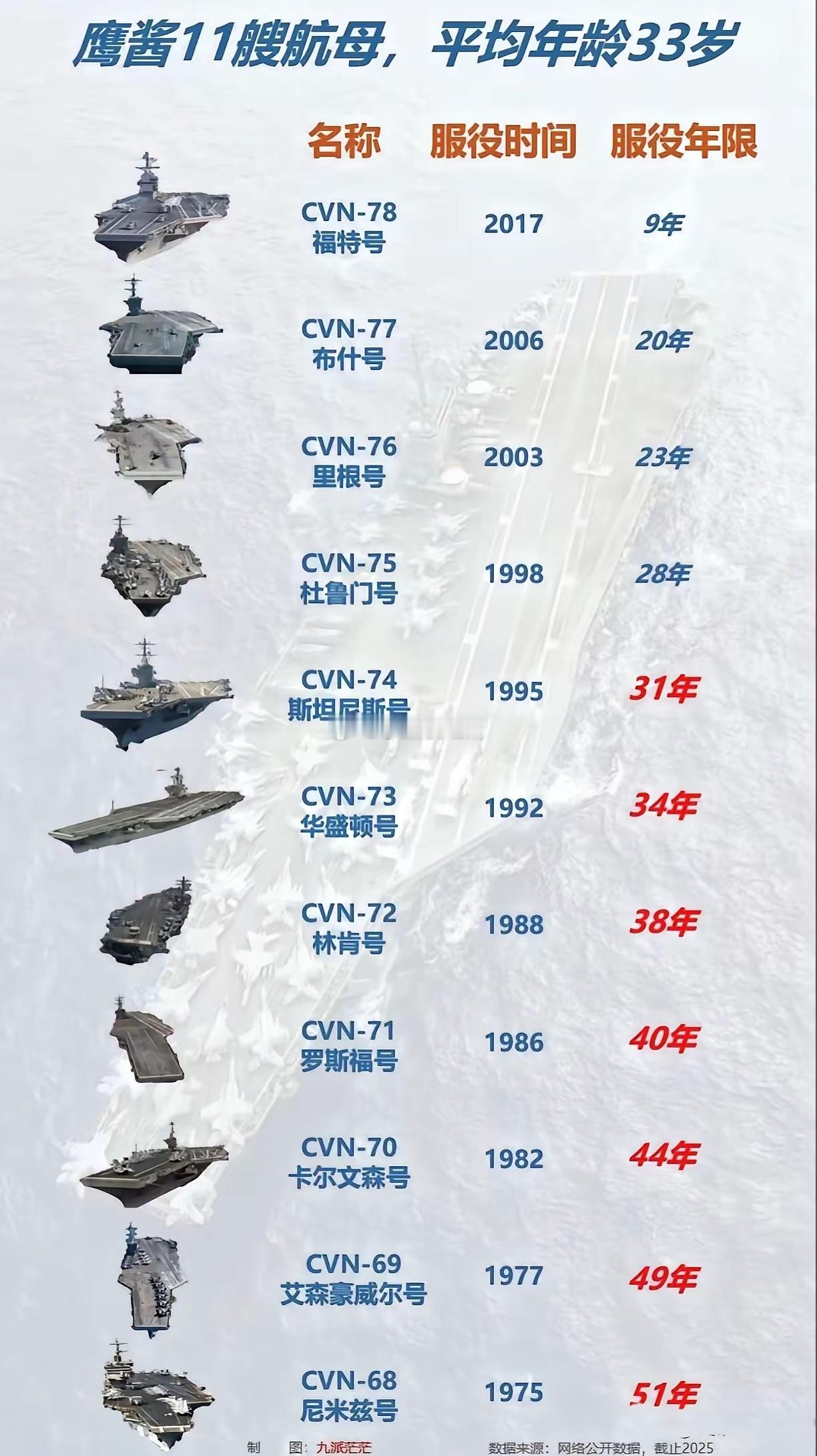 美国有着11艘航母,可以说是占据了军事强国的头号。别看这11艘航母家底,有着多威风。其实这里面,就有7艘航母,都是老爷级别的,服役时长达30年之久,要是维护起来,起码有一半是要趴窝的。到了目前这种状况,都是属于将要退役的的了,很多的装备已经是跟着时代有过脱节的,没法跟新出的航母来比拼实力的。所以说美国有这么多的航母,数量上就是纸老虎一个,现如今能打得过才是王道。