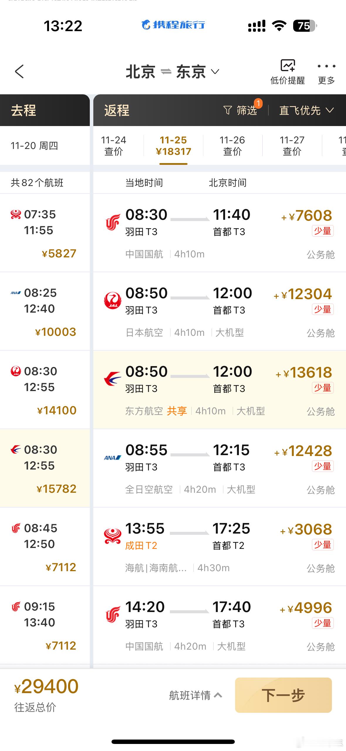 查了一下红叶季北京到东京往返机票,东航已经涨到3万。圣诞季便宜点,但国航也得1万2。同样时间段上周只卖6000多,太夸张了。