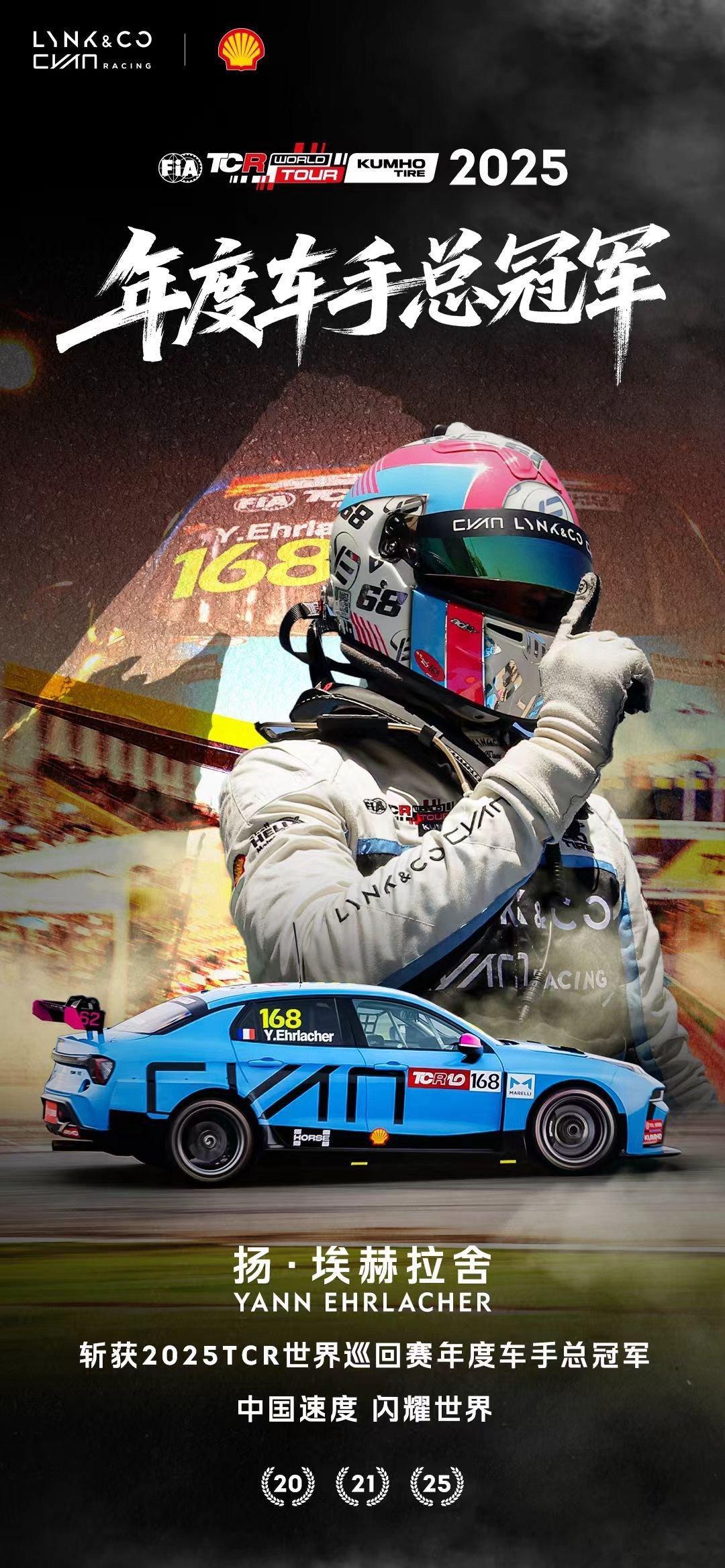 恭喜小杨!TCR世界巡回赛2025年度总冠军啊!同时领克Cyan Racing车队也拿到了2025赛季TCR世界巡回赛年度车队总冠军!9年7冠!P1是2019年在雪邦的小杨,P2是2025年在株洲的小杨真的是越来越帅越来越强!