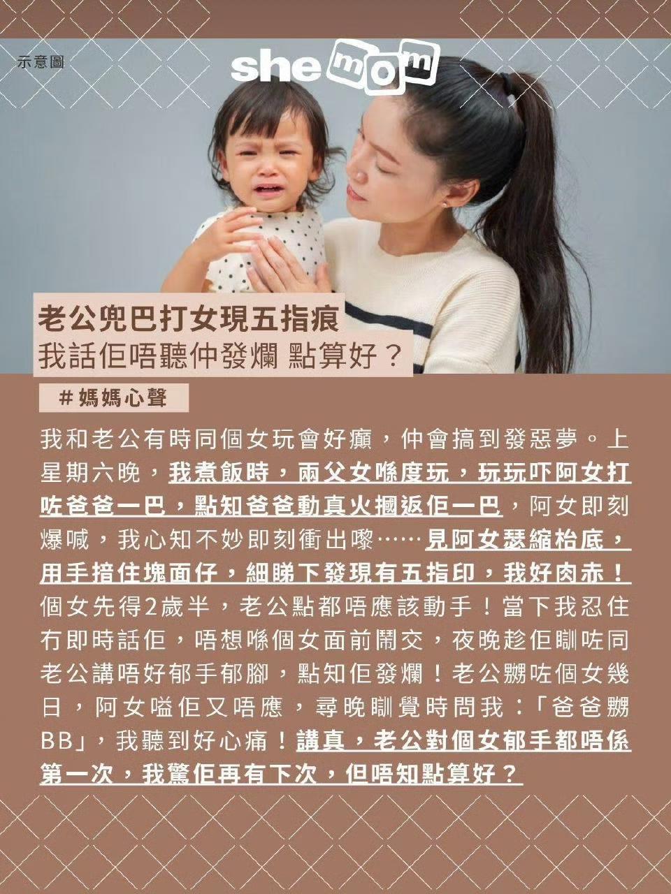 香港一位妈妈发帖:如果你係妈妈,接受到另一半打仔女吗?