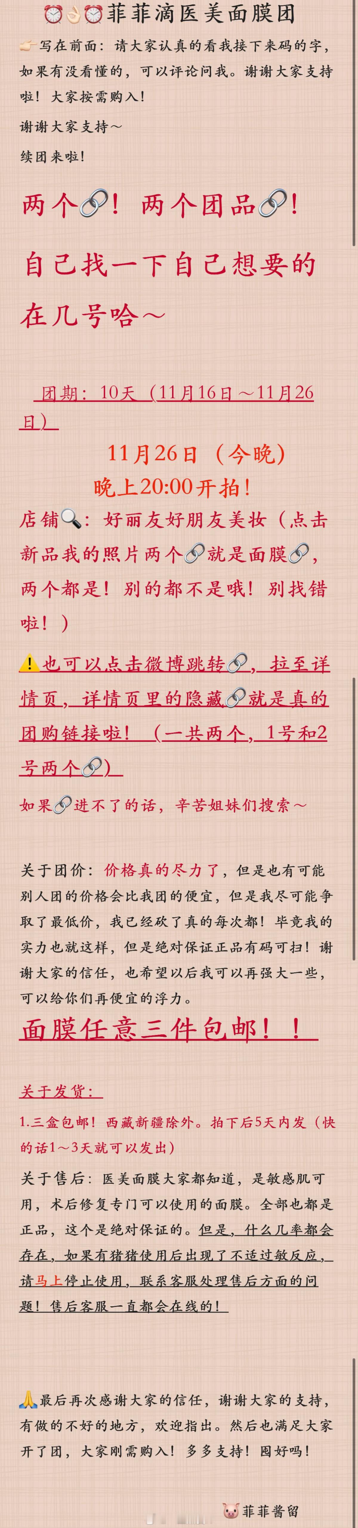 ⏰11🈷️16号晚20:00(今晚开拍)这次团期10天⚠️下次日期不定~按需🛒团期11.16~11.26截团(10天记得早拍早发)🎁 点zan👍 抽8人敷尔佳次抛2盒~🎁评论抽8人 水晶番茄面膜1盒~🎁晒单抽8人 菲菲亲选化妆包~🆕直接看图6介绍还有之前忘了买的👭可以赶紧上车了抓紧上车🚗话不多说大家认真看完帖子选择刚需即可~🍁🪽🛒检查(有两个🔗,东西找不到问💁)