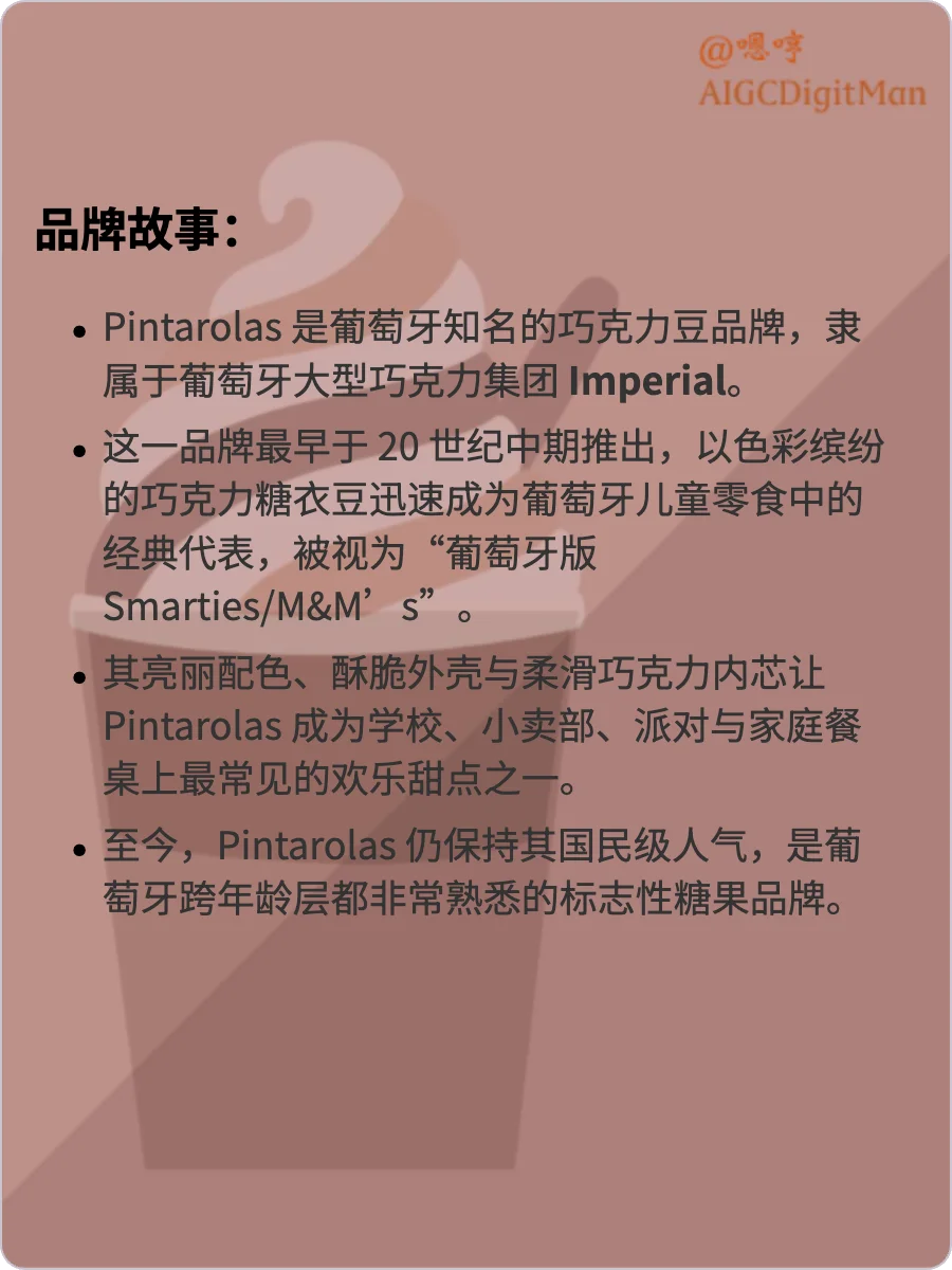 Pintarolas 是葡萄牙知名的巧克力豆品牌,隶属于葡萄牙大型巧克力集团 Imperial。