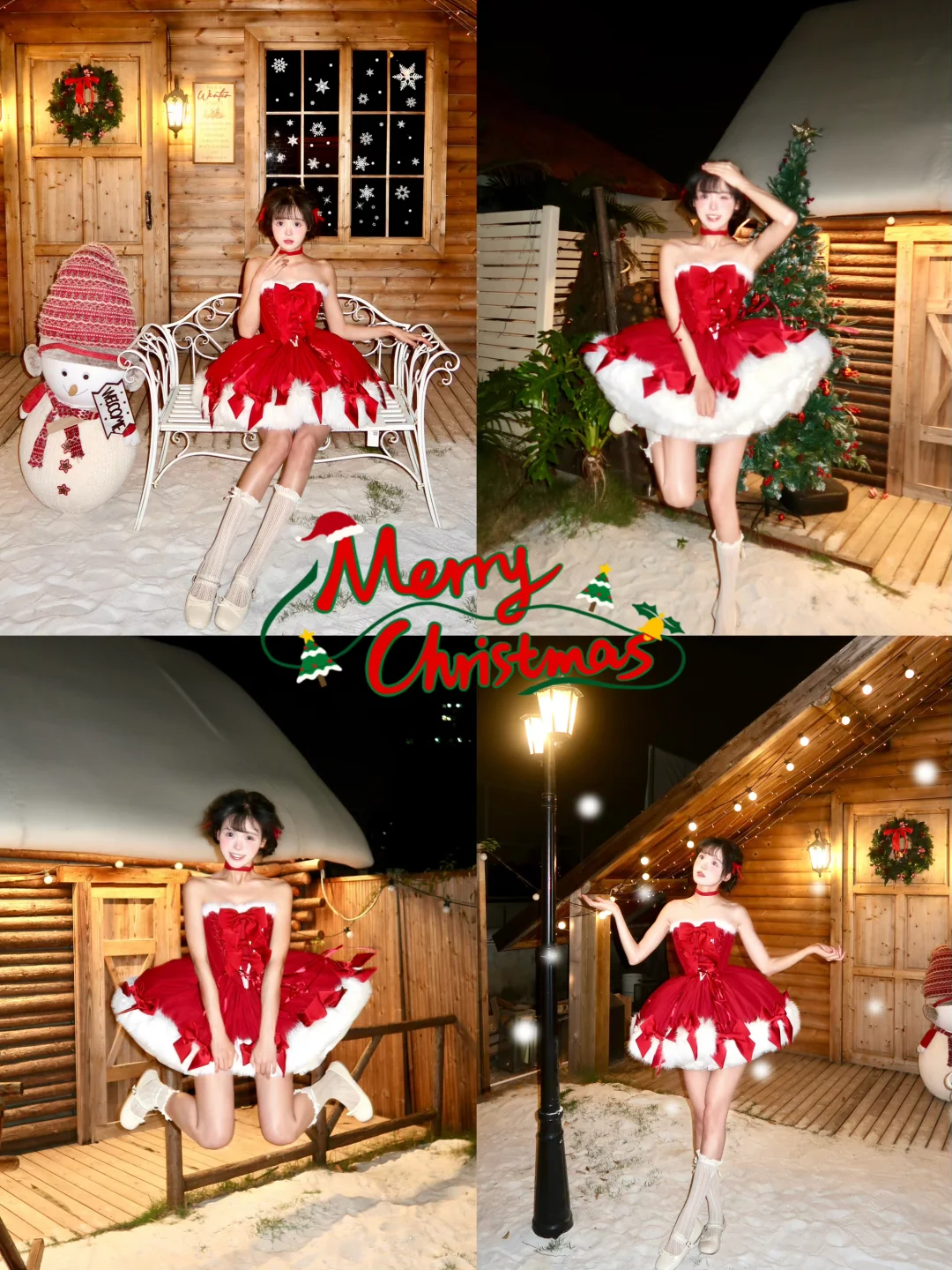喜欢穿红色|ccd公主雪景夜景圣诞拍照姿势