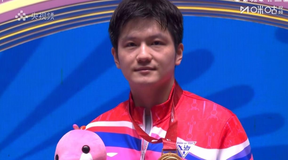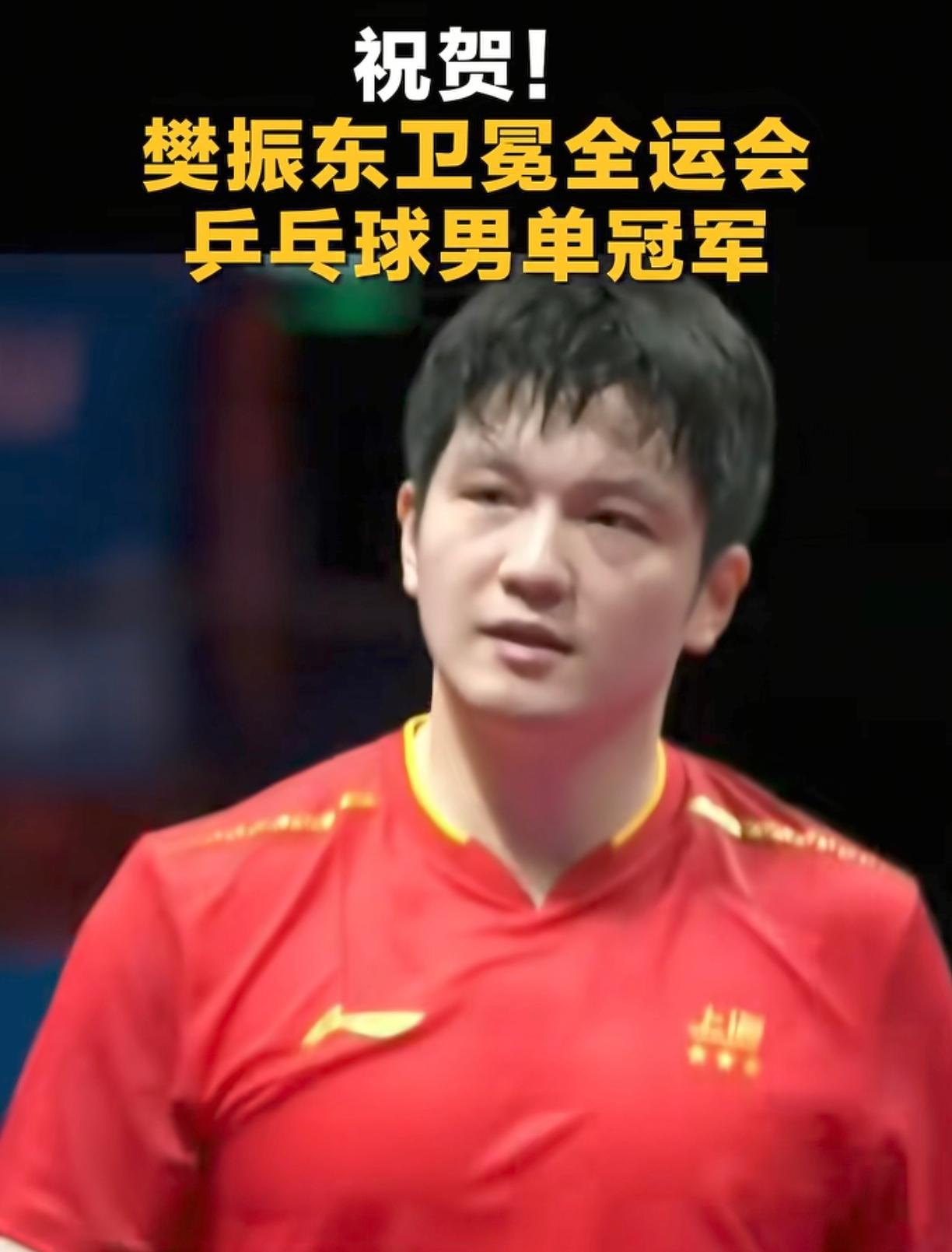 恭喜樊振东获得十五届全运会乒乓球男子单打冠军,又现招牌庆祝动作,笑得真开心,那个阳光大男孩又回来了,还是我们熟悉的小胖,巴奥之后,他脸上多了很多沧桑,没有以前爱笑,沉默了很多,虽然远离世界大赛一年了,如今还能保持这么高的水平,真的太不容易了! 樊振东一共参加了四次全运会,每一次成绩都很优秀,2013年第十二届全运会,获得男团、男双金牌,男单银牌。 2017年第十三届全运会,搭档周雨击败马龙、许昕组合夺冠,成为全运会史上唯一一对卫冕成功的男双选手。男单输给马龙获得银牌。 2021年第十四届全运会获得男团金牌,决赛先后战胜王楚钦、马龙,助力广东队时隔24年重夺冠军,男单决赛4 - 0横扫刘丁硕,首获全运会单打金牌。 2025年第十五届全运会男单获得金牌,决赛4 - 1战胜林诗栋,实现卫冕,至此全运会共获6金,男团项目还没有结束,期待樊振东冲击全运会第7金。(图片来源于网络侵删)