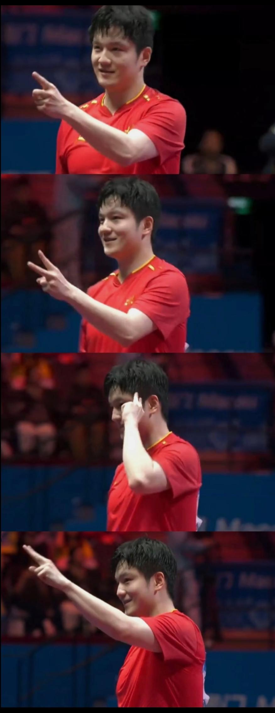 恭喜樊振东获得十五届全运会乒乓球男子单打冠军,又现招牌庆祝动作,笑得真开心,那个