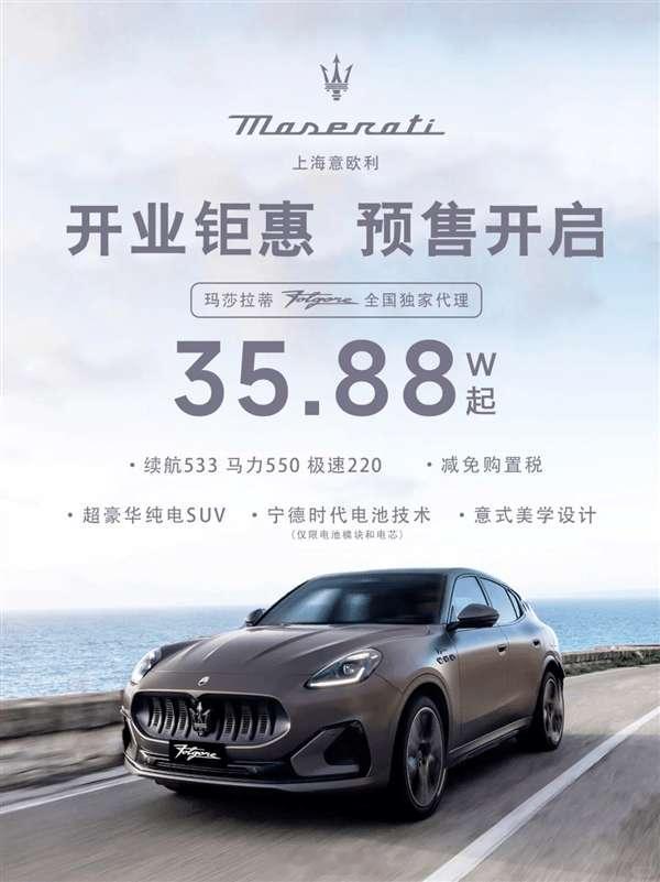 玛莎拉蒂首款纯电SUV,Grecale Folgore官方指导价89.88万元,现在经销商报价35.88万元,降了54万!真打骨折了