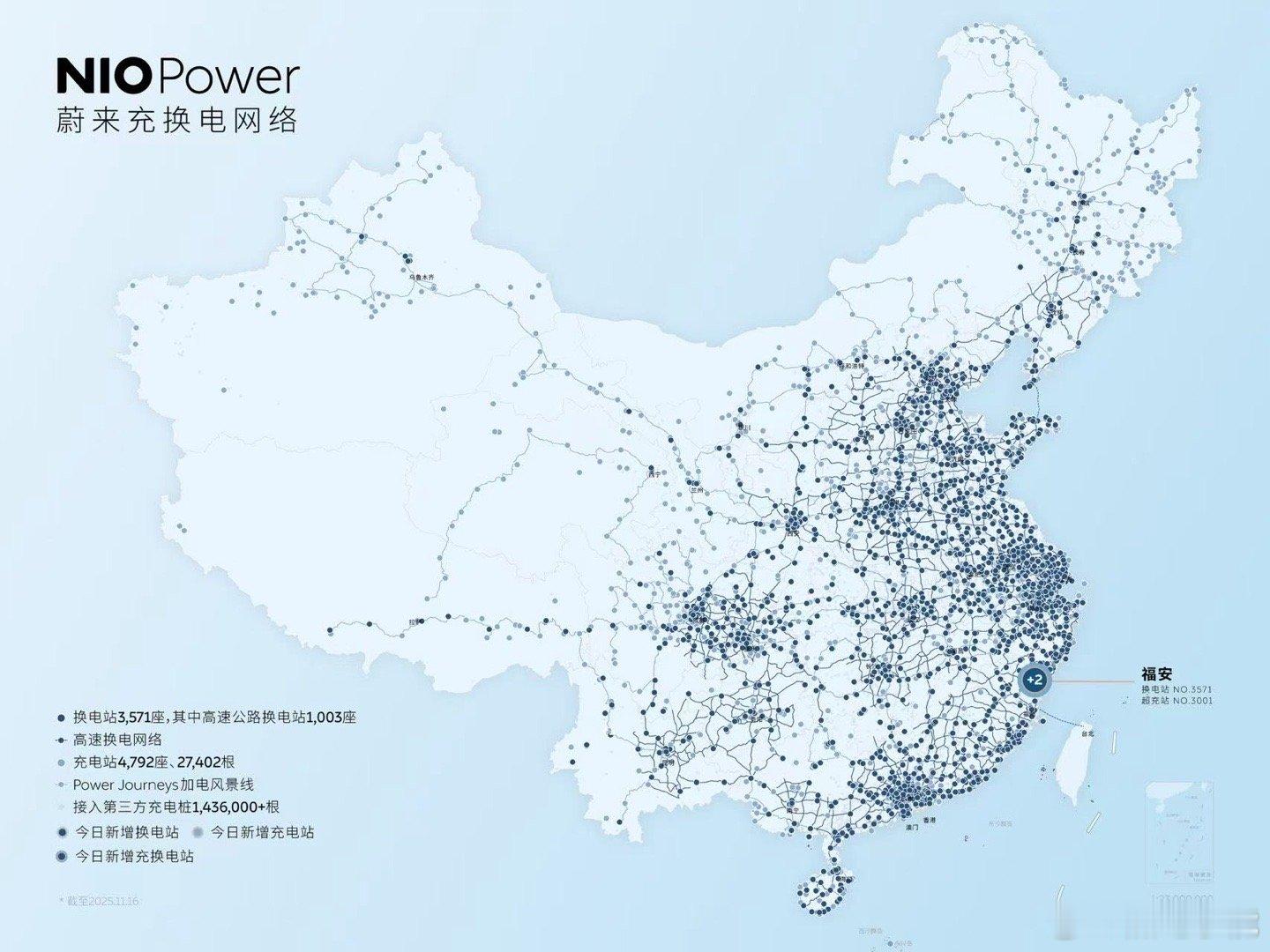 11月16日 NIO Power 2站上线NO.3571 蔚来换电站 | 宁德福安富春大道NO.3001 蔚来超充站 | 宁德福安富春大道