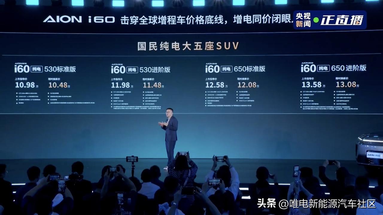 埃安i60正式上市[思考]增程版共两个配置,限时焕新价10.48-11.08万元;纯电版共两种续航各两个配置,限时焕新价10.48-13.08万元[思考]