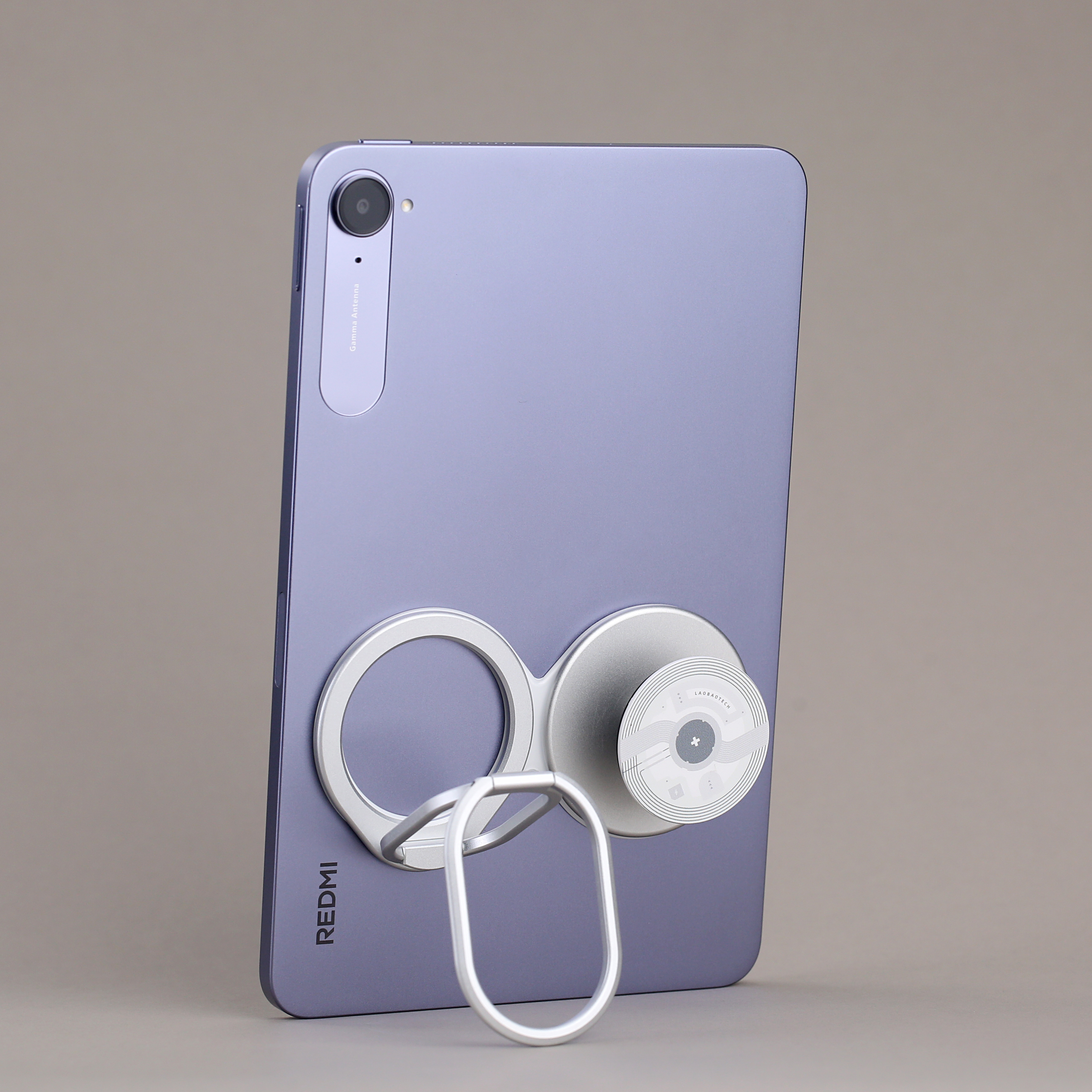 双磁环一贴,可以同时兼顾磁吸支架和磁吸气囊,两不误这款小玩意,很适合 iPad mini7、K Pad 和 MatePadmini 这类小平板,后续估计会有更多品牌推出小平板,适合单手握持的双磁圈方案也会越来越流行了