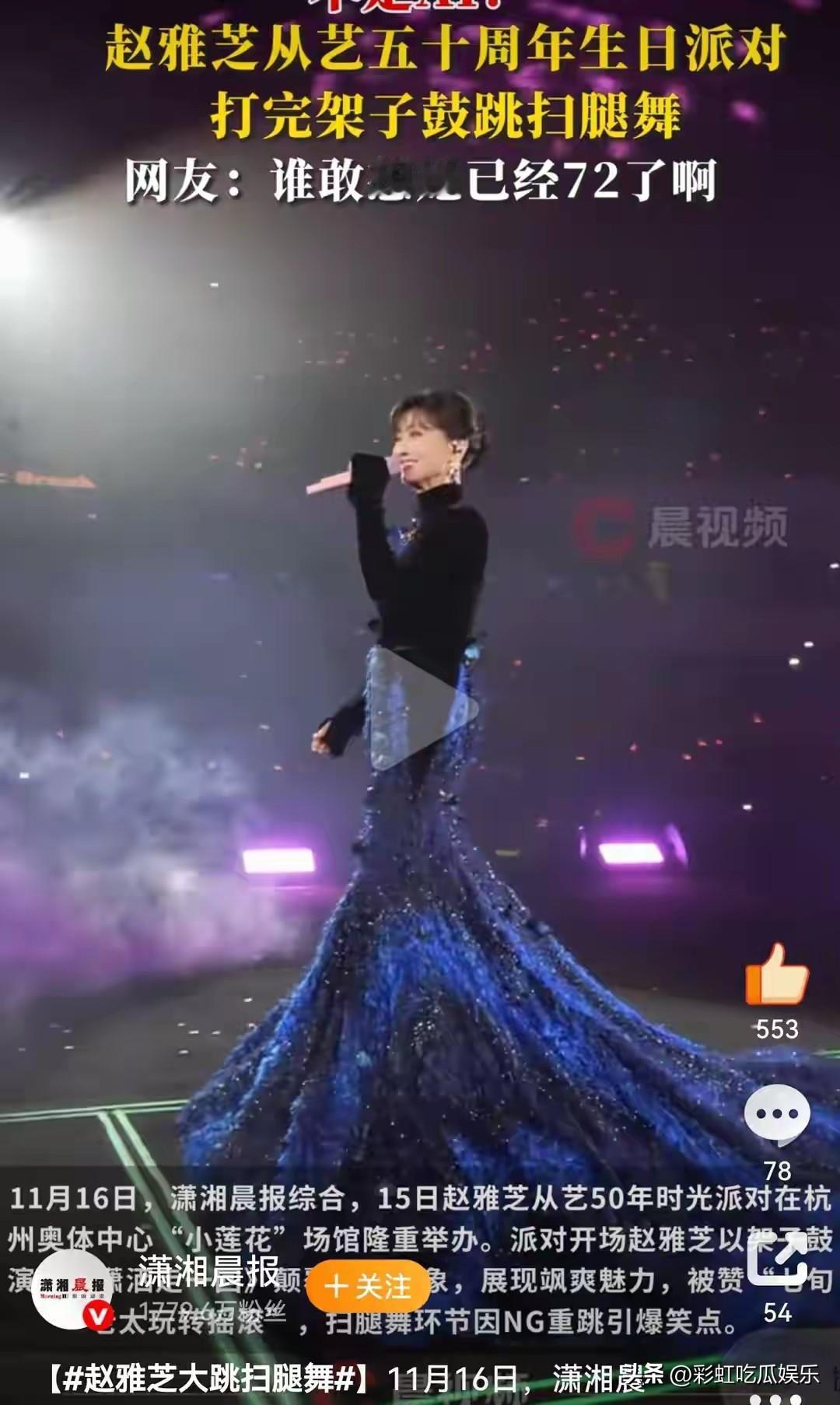 72岁赵雅芝开了个人演唱会跳扫腿舞,没想到她身材这么好,完全不像老年人,不看脸的话太年轻了,身材苗条体态优雅,真的是不老女神。 赵雅芝一直在保持年轻和优雅,不敢体面老去,她是被网友捧杀了。 她应该向叶童学习如何与时光和解,不染发不装嫩,优雅体面的老去,银发也很美。 看着赵雅芝脖子上松垮的颈纹心里不是滋味,为了取悦粉丝她居然跳了擦边的扫腿舞,有一种看到亲戚为了生存被迫营业的心酸。