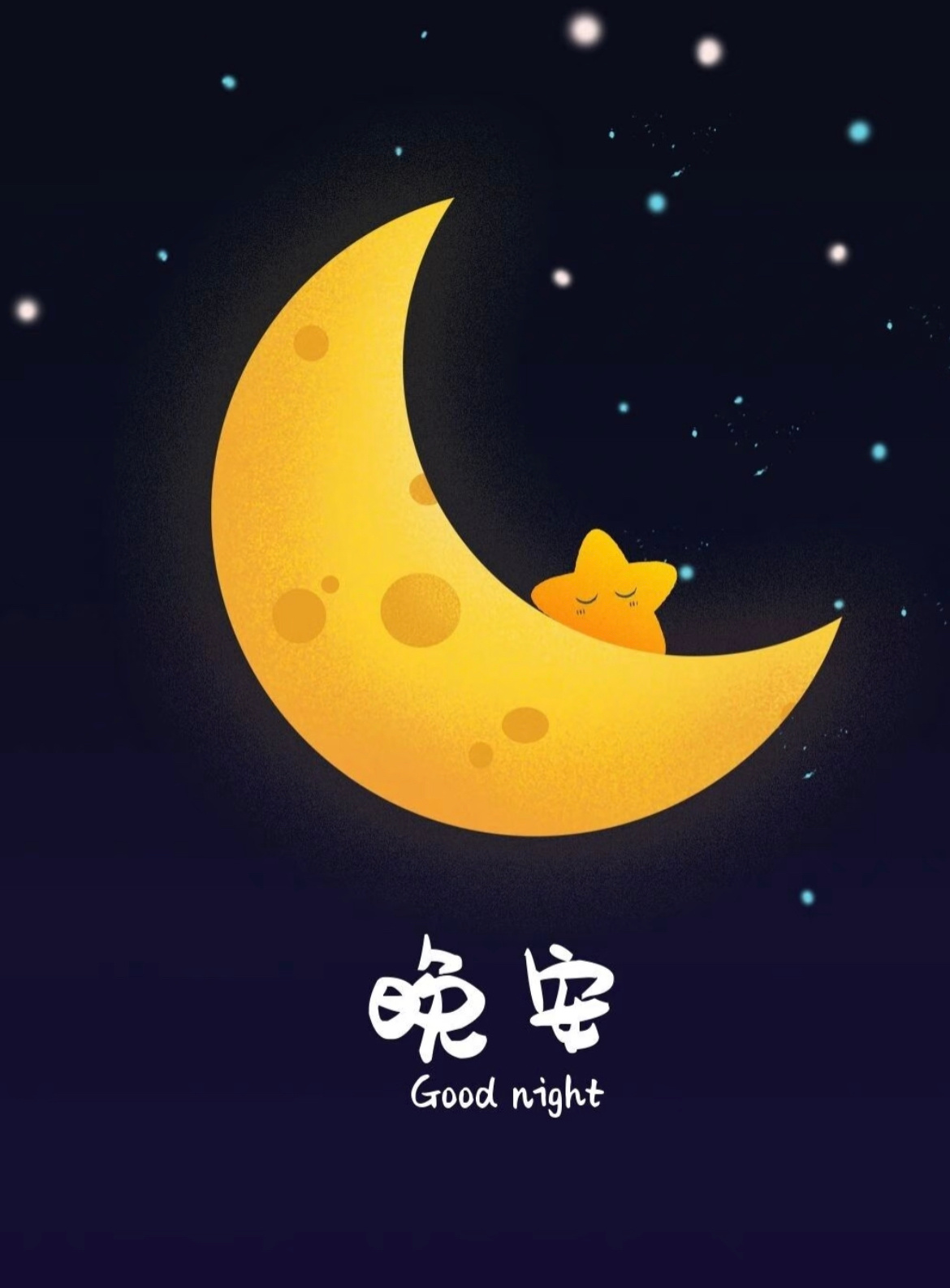 夜晚的月亮在微笑,星星在眨眼,它们都在对你说:“晚安,好梦~”