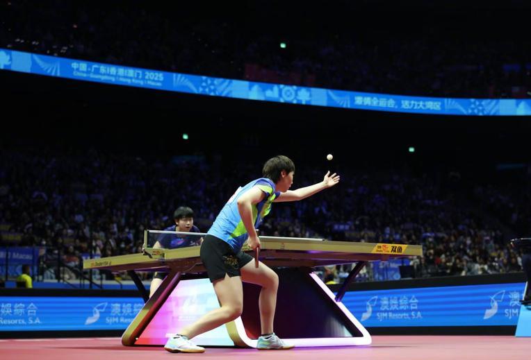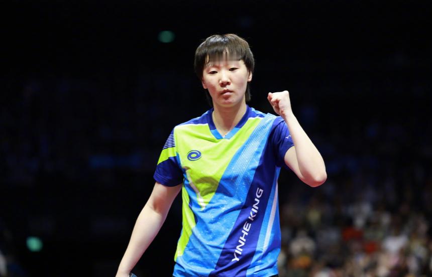 第十五届乒乓球成年组女单决赛,,蝉联全运会女单金牌。六局比分:7-11、11-8、12-10、11-4、14-16、11-9。