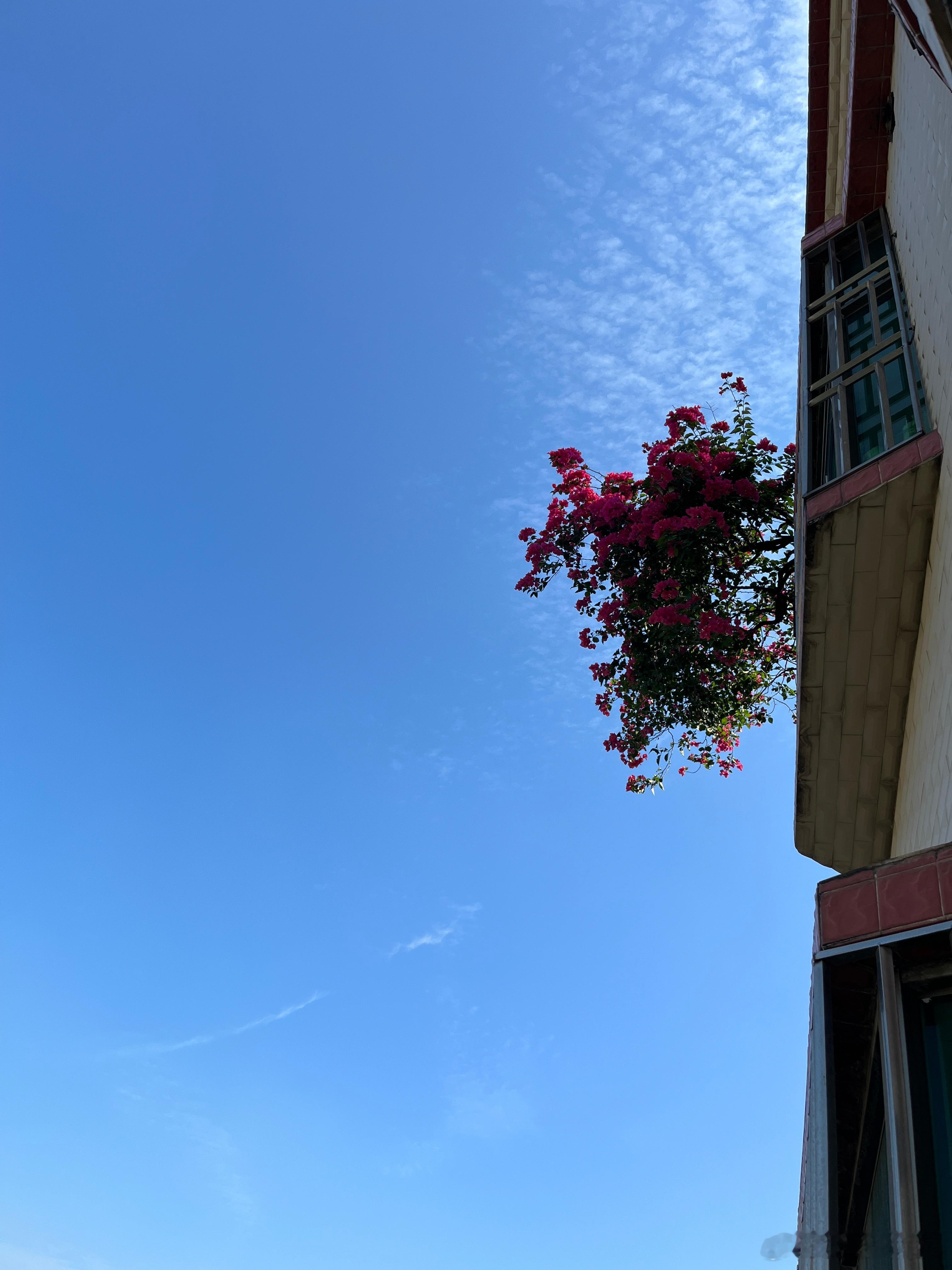 晾衣服看到这楼上盛开的三角梅,真好看。