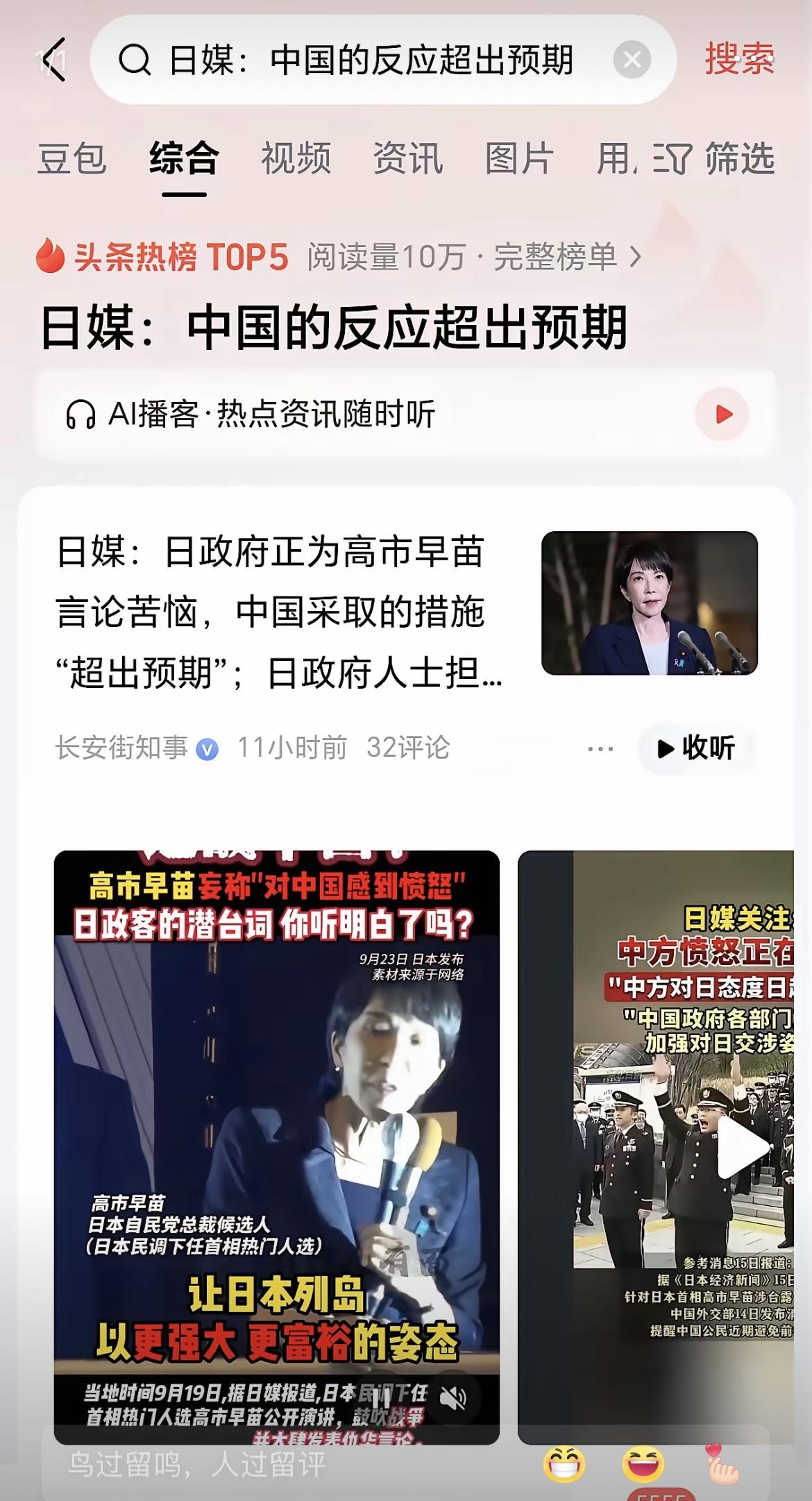 听到在日本做生意的朋友说,日本国内民众目前对我国给日本施加的巨大压力毫无感觉,也根本不当回事,甚至还真心认为高市早苗的言论没有错。 这话乍一听让人心里不是滋味,但越想越觉得:问题的关键,可能根本不在日本,而在我们该怎么看清这场博弈。 日本怎么会“没感觉”?背后其实有深层原因。 第一,日本国内舆论长年被“台湾有事、日本有事”的论调浸泡。 电视台、政客、智库天天灌输这一套,普通民众听多了,自然觉得高市那番话“理所当然”。就像家里长期放着一样的背景音乐,习惯了,就当正常了。 第二,他们日常生活没变化,所以不会紧张。 电车照坐、商场照开、生活照旧。 对普通日本人来说,只要饭碗没掉、物价没爆,他们当然觉得所谓“压力”离自己很远。 第三,更现实的一点——日本对外安全,本质上还是靠美国。 他们心里有个默认认知:真出事了,美国会顶上。 这个心理“安全垫”,让他们对风险迟钝得很。 但日本民众“没感觉”,不代表国际形势没变化。 我们这几年手段更稳、更准。 经济层面、产业链布局、国际话语权的提升,都是实打实的力量。 不需要拍桌子,也能让对方重新计算成本。 反过来看,高市早苗为什么频频挑事? 因为她需要靠“强硬”来稳住国内保守派。 越是要表现强硬的政客,越说明他们底气没那么足。 所以关键还是一句话: 真正决定局势走向的,从来不是对方情绪,而是我们自己的实力。 各位读者,你们怎么看?欢迎在评论区讨论。