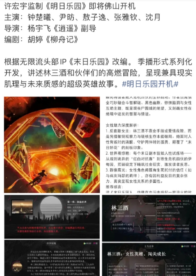 ELLE提前发布闭年刊封面预告,《明日乐园》也立刻官宣了钟楚曦,一开始这个饼溜得是杨紫和刘浩存,最终花落钟楚曦,一直被网传,但官方没认领,钟楚曦拿奖之后,片方就立刻官宣了。