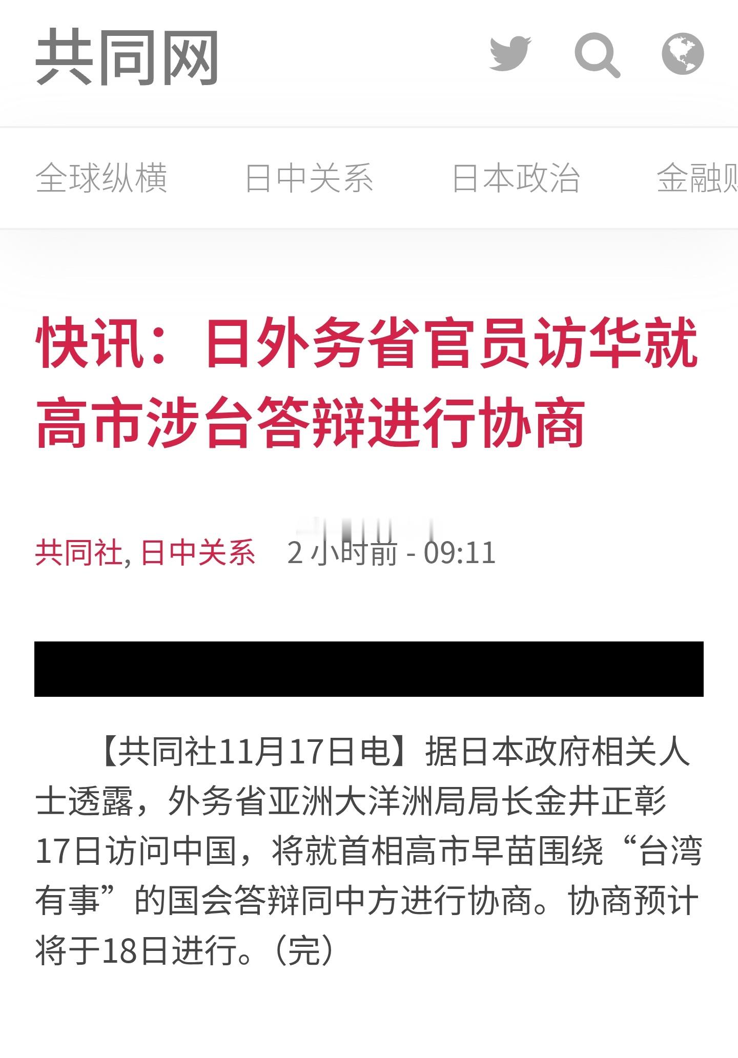 据日本广播协会(NHK)报道,日本外务省亚洲大洋洲局局长金井正彰将于今天(11月17日)起访问中国,预计将与中国外交部亚洲司司长刘劲松等人举行会谈。报道称,在会谈中,金井正彰将说明日本首相高市早苗近日的涉台发言并未改变日方一贯立场,同时传达“即便双方存在立场分歧,也应避免影响人员交流”的立场。