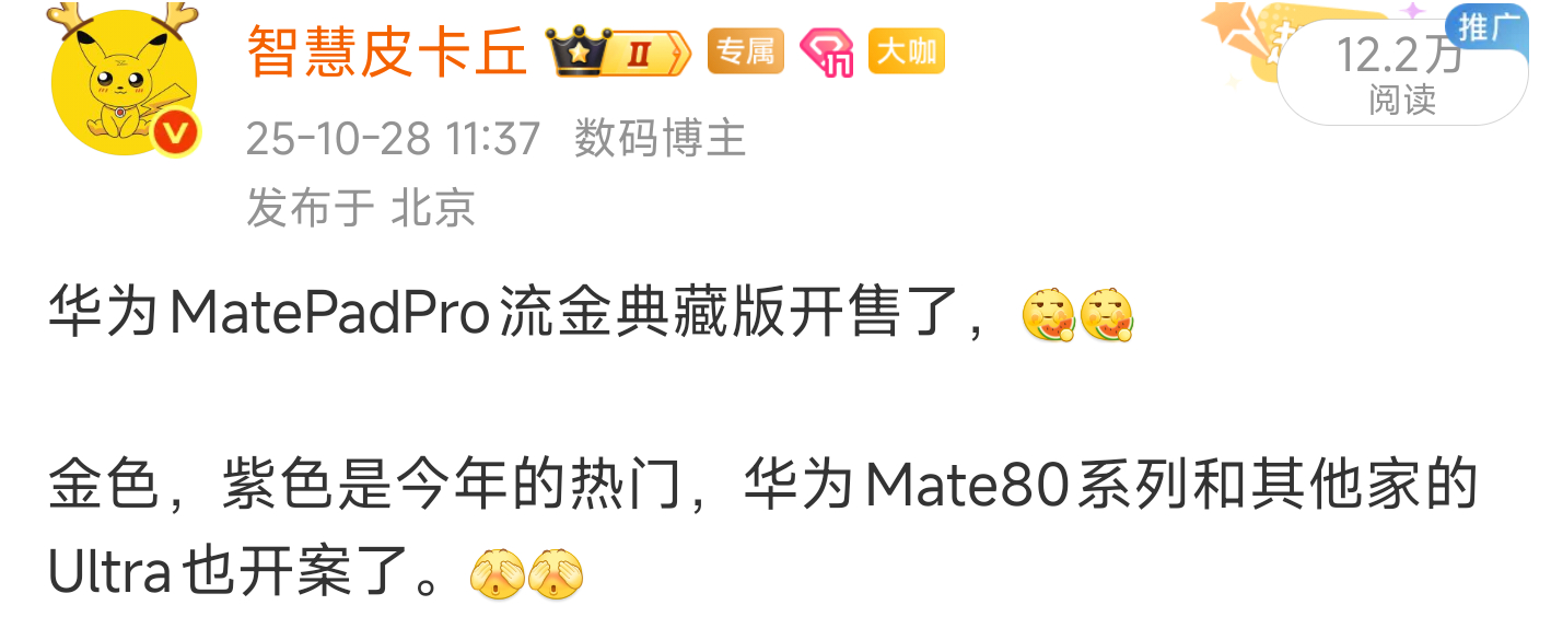 华为Mate80系列星环设计,华为Mate80RS非凡大师多边设计,大家喜欢哪种设计,开启预售。全新双潜望长焦架构,遥遥领先。和大家说过金色/紫色,今年物料主打色。麒麟9030综合素质可以参考一下8G2。