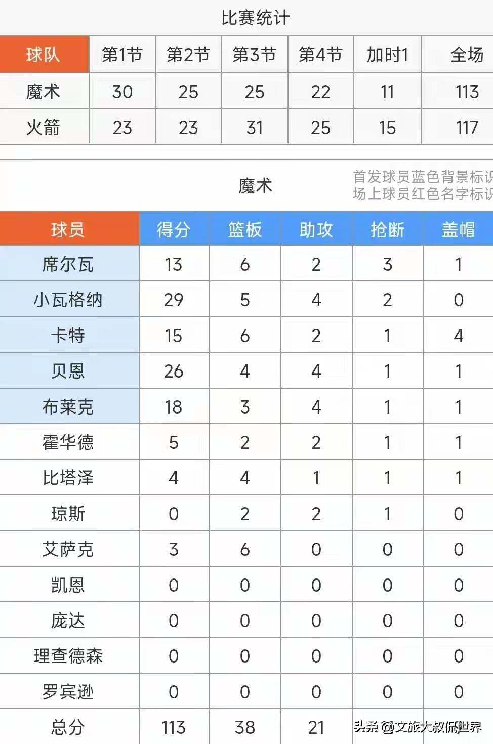 罚球致胜!杜兰特35+5+6&申京30+13+8,火箭加时117-113逆转魔术喜获四连胜。 北京时间11月17日上午8:00NBA常规赛火箭队主场迎战魔术队,塔里.伊森伤停。首发阵容为阿门、奥科吉、杜兰特、小贾巴里.史密斯、申京;魔术队班切罗与萨格斯缺阵,首发五虎为布莱克、贝恩、小瓦格纳、席尔瓦、卡特。 第一节开打,申京后仰跳投射进2分,卡特外线长虹贯日远射3分命中,又是申京中距离再来2分,小瓦格纳急停跳投也进2分, 继续勾手上篮再来2分,小贾巴里.史密斯杀进篮下轻松放进2分。双方你来我往杀的风生水起,首节结束魔术队30:23 领先火箭队7分,小瓦格纳单节13分,杜兰特9分。 第二节继续,谢泼德外线发射高射炮3分命中,然后后仰干拔再来2分,一个人连得5分,火箭队追到28:30。艾萨克同样外线横眉冷对千夫指还击一个3分止血,贝恩骑马射箭命中2分,申京博得犯规罚球两罚一中添1分。双方一顿猛攻上半场结束,火箭队46:55落后魔术队9分。 下半场易边再战!双方依然杀的热火朝天!魔术队今天首发五虎全部上双,小瓦格纳、卡特、贝恩、席尔瓦等人轮换进攻得分;火箭队不甘心放弃,杜兰特、申京、谢泼德、阿隆.霍勒迪也是先后发力奋起直追。一番激烈厮杀结束,最后时刻布莱克抢断一条龙暴扣打进2分,申京迎着压力勾手上篮得2分,火箭队102:102追平魔术队进入加时赛。 加时赛开战!贝恩小抛射命中2分,亚当斯暴扣还击2分,又是贝恩反击后仰中投得2分,阿门大力水手爱灌篮暴扣添2分,106:106再次战平。申京迎着防守打进2+1,布莱克回来同样还击2+1,席尔瓦制造犯规罚球两罚一中添1分,杜兰特外线一剑封喉飙中3分,死神时刻到了!小瓦格纳博得犯规罚球两罚全中得2分,谢泼德同样罚球两罚全中添2分,卡特被战术犯规罚球两罚一中得1分,阿门同样罚球得2分,最终一番激烈厮杀比赛结束,火箭队加时赛117:113逆转魔术喜获四连胜!