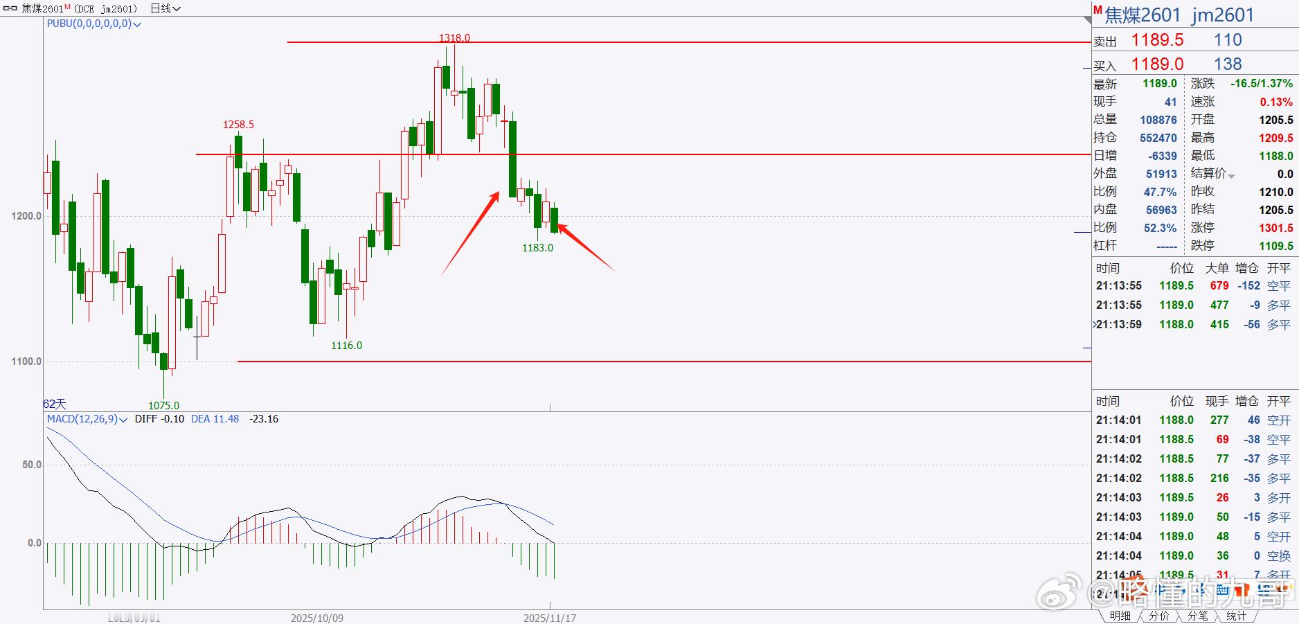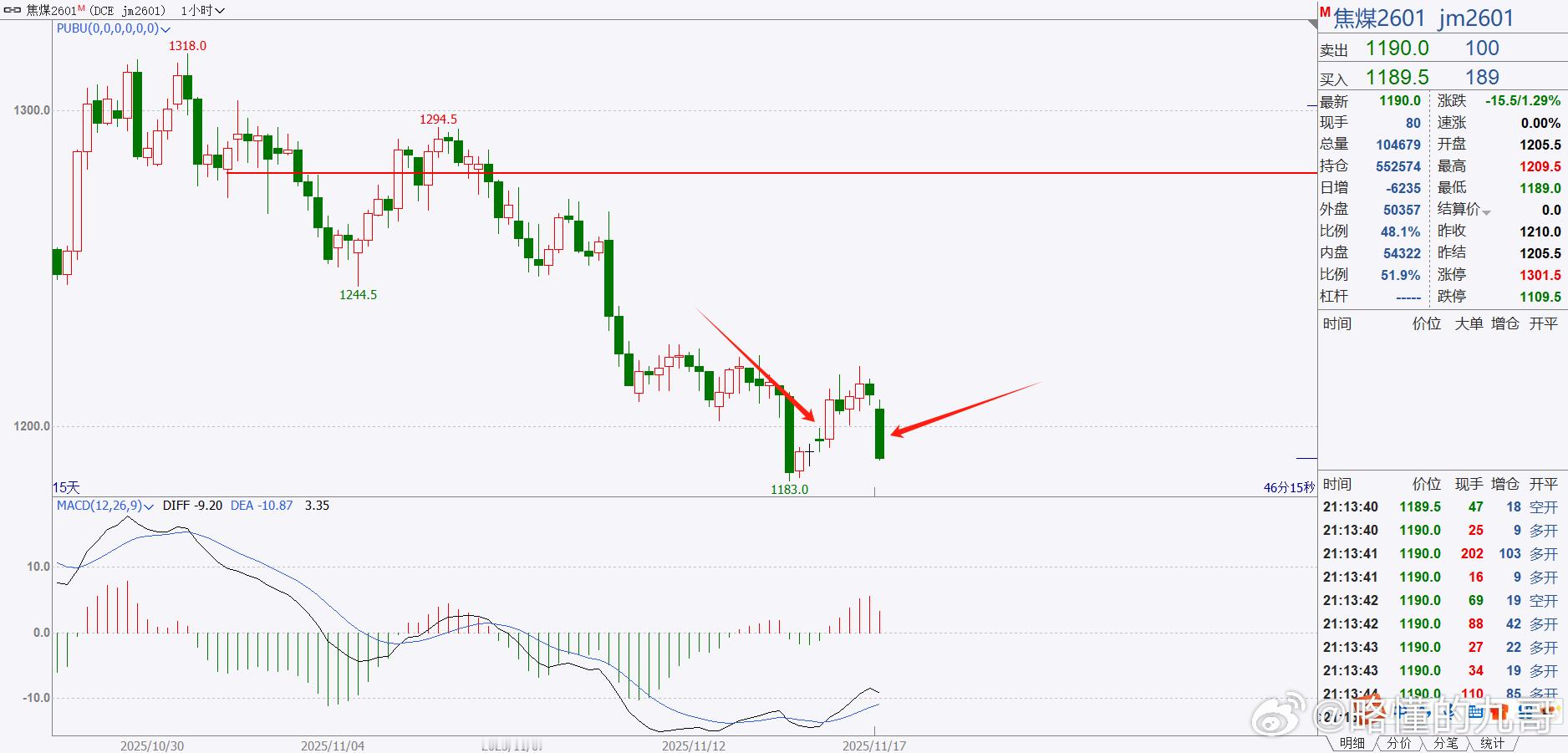 焦煤下去了,还是按照之前的观点不变!不想抬杠了,好些人稍微反弹一点就不行了!哎!没辙啊
