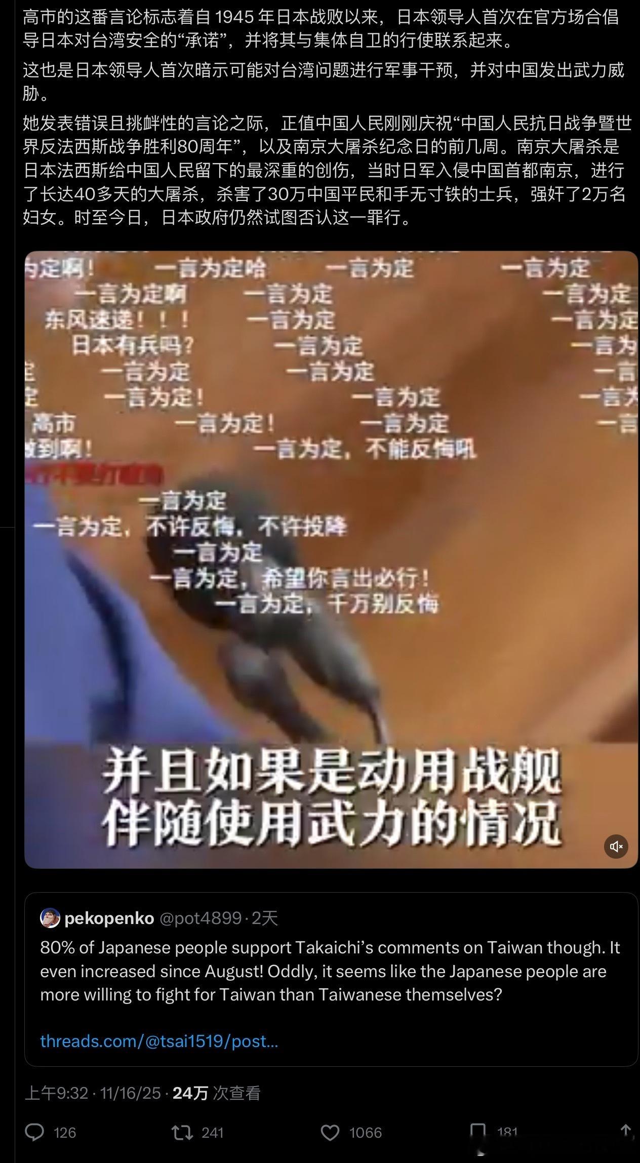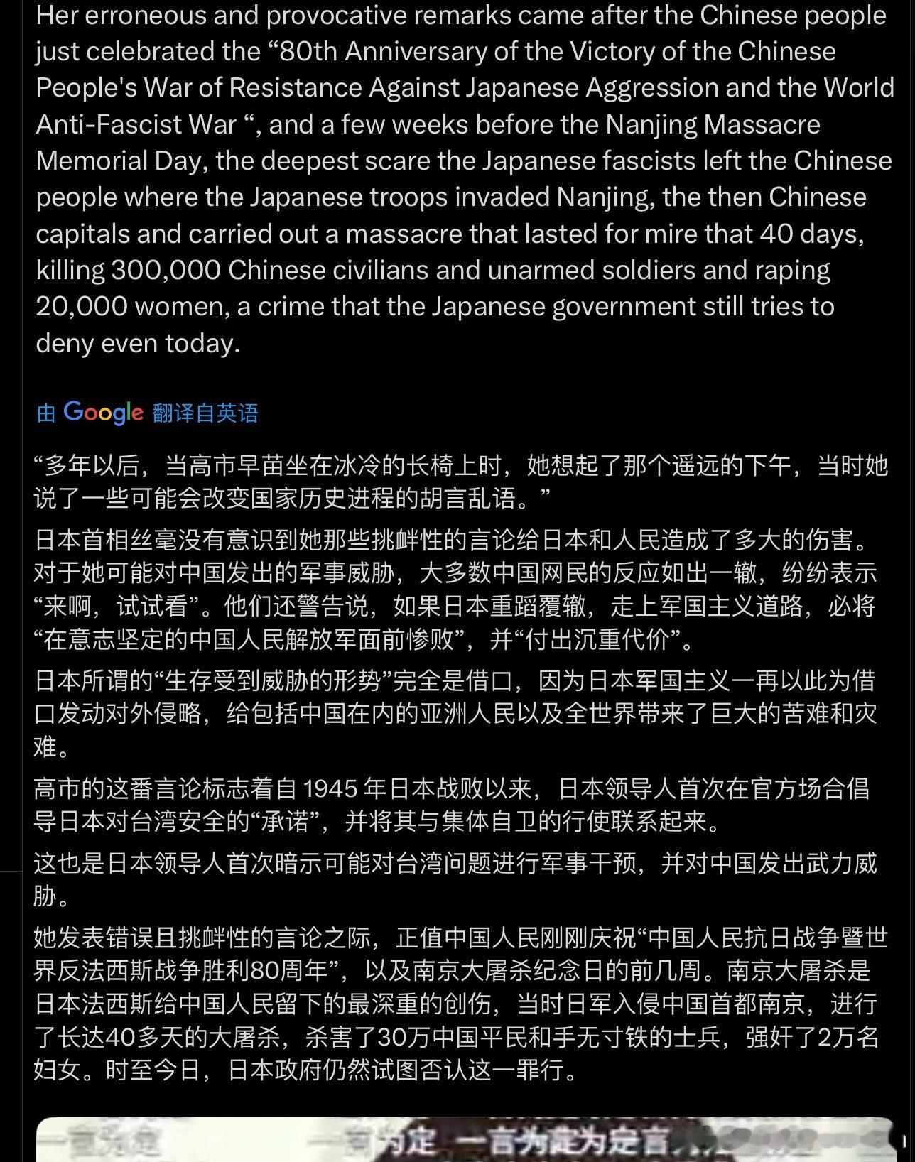 不管反华日本右翼怎么叫唤投诉,作为中国人该说清楚的事实一定要说清楚,大是大非的问题上一定要与祖国和人民站在一起。至于写一大堆日语在评论区叫骂的日本网民,关我什么事。写那么多我又不会看,我没兴趣学日语也看不懂