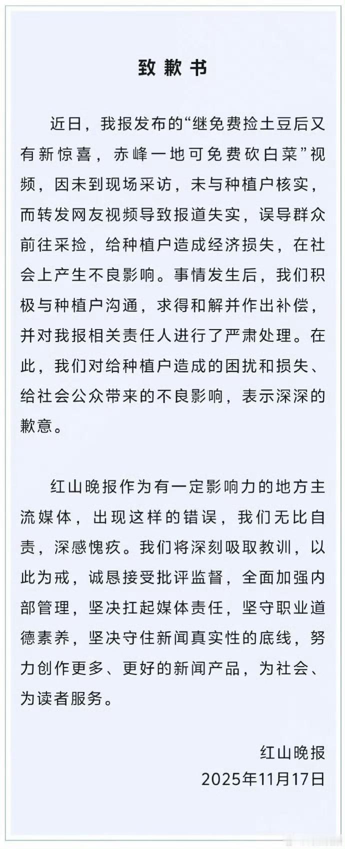 通报和事情处理方式都还是比较好的,既让网民信服又实事求是分清了各自责任。主要受到处罚的是首发的网民,另外就是红山晚报。其他转发的网民以及夸大事实的种植户,都受到了批评教育处理,其他人员受到的处理也比较轻,符合民意。