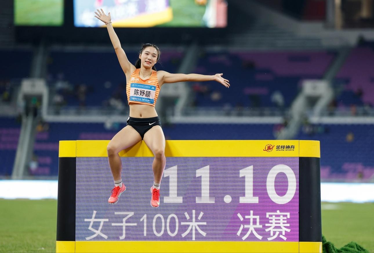 恭喜小孩姐,年仅16岁的陈妤颉,收获女子百米冠军,创造全运会新纪录。