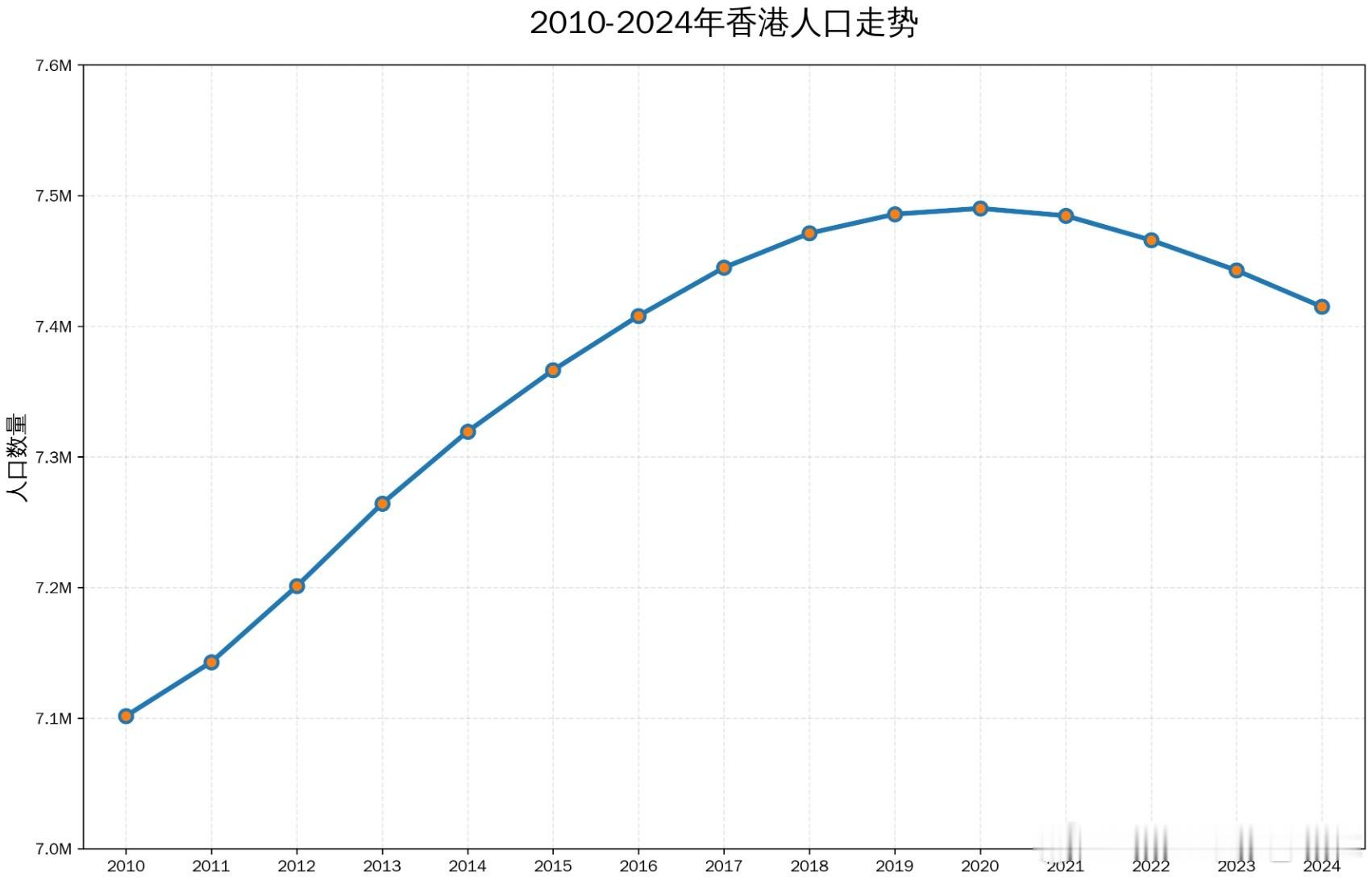 UBS关于房地产那篇报告到处在转,但结论不够和谐,所以有点不好发出来,大家自己去看吧。不过瑞银其实也没说什么新东西,都是一些常识性数据的推演,比如租金回报率、房贷利率,人口供需等等。这里我以香港的房价为例简单说几句(图1蓝色为房价,红色为租金),香港房价涨幅在持续领先租金涨幅以及房贷利率不断上升超过租金回报率后,房价开始转跌,同时注意到在跌了一段时间后房租反而上涨了,此时恰好是利率高过租金回报比的时候,意味着大多数人宁愿租房也不愿意买房(大家都不傻,买房每月的房贷要高过租金的时候,那就不如租房了),而最近香港房价似乎见底企稳了(连续数周小幅反弹),原因也很简单:1)租金上来了;2)利率下去了。当然这里还忽视了一个人口/需求的情况,来看看24年前的香港人口数据(图2),2020年开始香港人口有一个下滑,而房价高点恰好也是在2020年后。而2024年到2025年上半年,香港出生了3.52万人,死亡5万人,但通过人才优选计划,有1.82万移民进入(主要是内地),死掉了老人,迎来了大量青壮年移民,所以人口结构是优化的,配合利率和租金的变化情况,房价在24年底开始企稳。