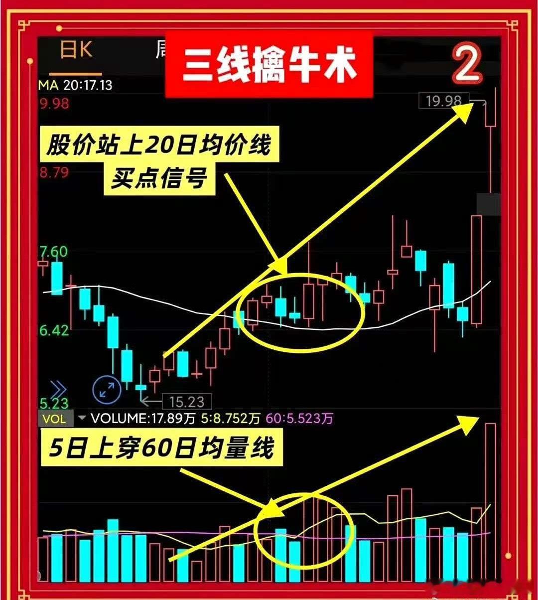 三线擒牛:一位实战派的极简法则第一步,化繁为简。将交易软件默认的复杂均线全部清除,仅保留20日价格均线,同时将成交量均线调整为5日与60日。20日线是资金动向的关键参考,5日与60日均量线则是资金进出的直观信号。界面瞬间清晰,三分钟即可完成复盘。第二步,把握四个关键阶段。1. 休眠阶段:5日均量线持续位于60日均量线下方,市场交投清淡,无论K线如何波动,保持观望。2. 启动阶段:股价放量突破20日线,同时5日均量线上穿60日均量线,视为启动信号,及时跟进。3. 回踩阶段:股价缩量回调至20日线附近,5日均量线回靠60日均量线但未形成死叉,视为加仓时机。4. 洗盘阶段:股价短暂跌破20日线,但5日均量线仍维持在60日均量线上方,属于主力洗盘行为,保持持仓耐心。第三步,遵循信号,放弃主观。不预测政策,不追逐热点,仅依据量价共振信号操作。过去四年,通过这一体系跟踪数百次实战,超过七成标的精准捕捉主升行情,实现稳定收益。第四步,风控融入体系。单只个股仓位不超过总资金20%,触发止损条件次日果断离场,确保亏损幅度可控。即便市场整体调整,系统仍能筛选出独立走势标的,具备天然防御能力。第五步,修炼执行定力。将交易规则浓缩至一页纸,置于操作界面旁。信号未出现时,保持双手远离键盘。纪律创造自由,简单背后是深刻的体系支撑。方法已交付,执行在个人。三分钟完成参数设置,熟记四个阶段特征,下一交易日即可实践。别再让复杂指标消耗时间与收益,真正有效的方法,往往直指核心。若本文对您有所启发,欢迎点赞支持,也欢迎分享给更多需要的朋友。本文仅为方法论交流,不构成任何投资建议。市场有风险,决策需谨慎。