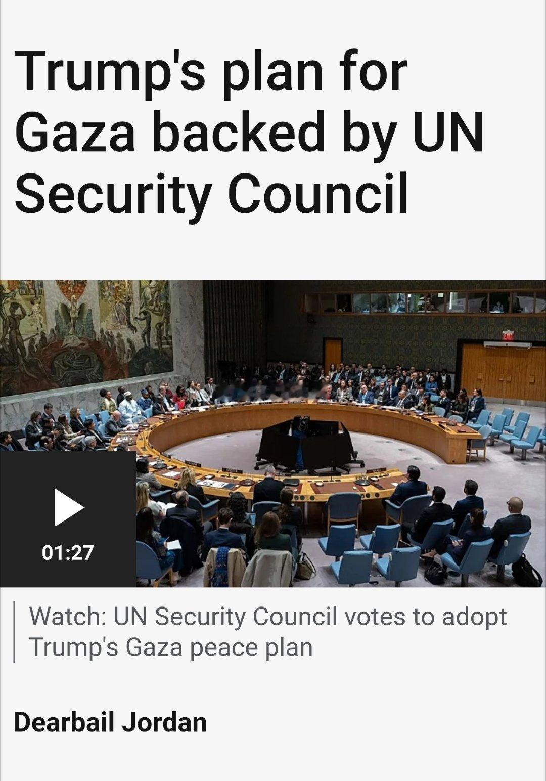 据报道,联合国安理会星期一批准了特朗普的加沙和平方案。为美国政府在停火之后重建被以色列摧毁的加沙地带提供了联合国法律授权。美国提交的决议,要求国际稳定部队进入加沙,解除武装并负责治理。这个提案附上了特朗普的二十点停火方案。提案还设想成立和平委员会来监督和平计划,但没有说明委员会的成员组成。