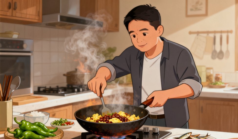 灶台间藏着最动人的烟火气!酱豆炒蛋、尖椒小鱼都是刻在记忆里的家常味,下饭又暖心。穿西装掌勺却无半分架子,紧张手抖时的幽默自嘲,聊起家乡味时的真诚,恰是“江湖气”的最好注脚——既有企业家的格局,又有普通人的热络。这道菜里炒的是乡愁,是真诚,更是拉近人心的温度,难怪能让千万人共情。