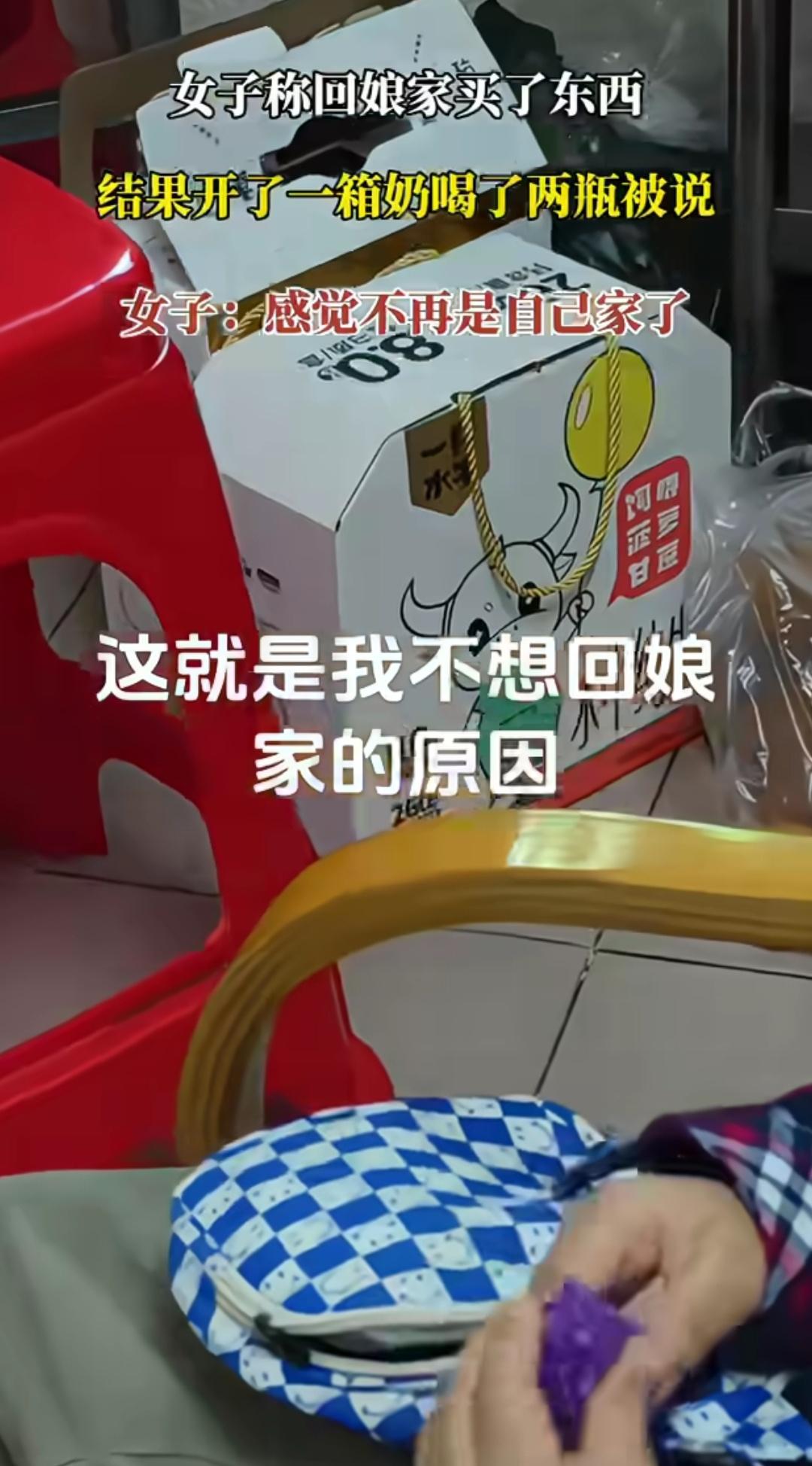 广东一女子买了东西回娘家,结果开了一箱牛奶喝了两瓶被父母说,女子称感觉不再是自己家了。有网友称,去娘家我感觉得讨好所有人,说话都得小心翼翼,一不小心都不知道得罪了哪个,浑身不自在,我还是喜欢呆自己家里做大王的感觉。也有网友称,我爸爸妈妈从来不会说,爸妈看到了也会说买了就是喝的。自己家又不是在外面。我娘家人都挺好的,我爸妈最好。