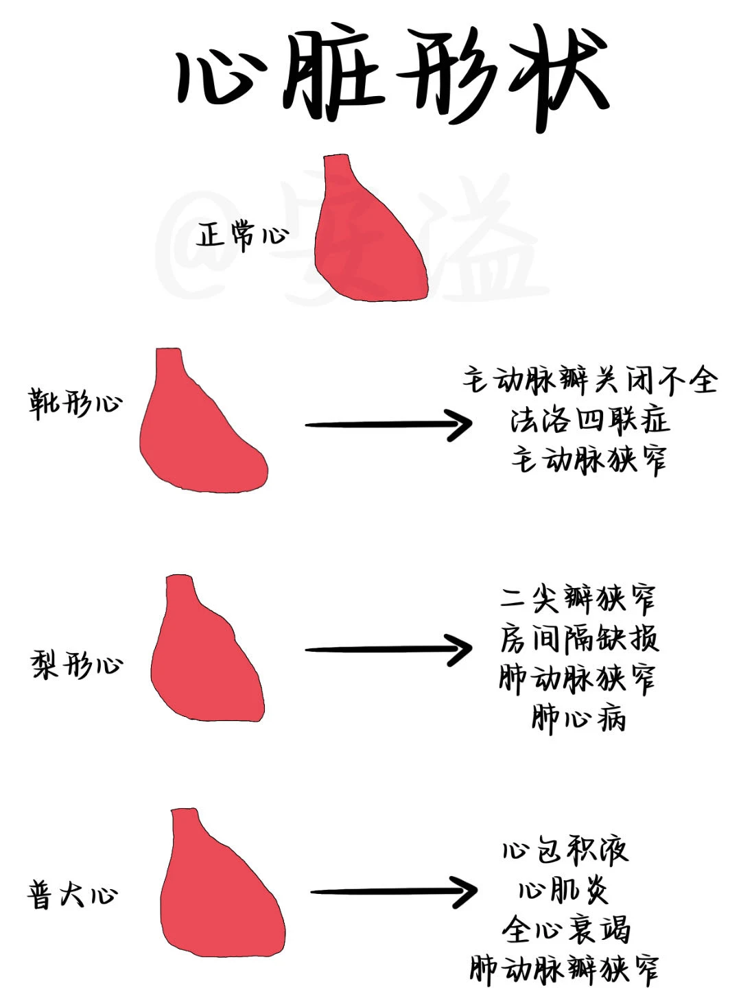 速记~心脏形状各自都对应什么疾病
