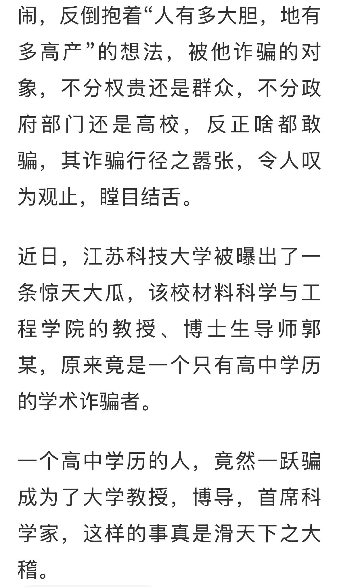 高中学历当博导,怎么骗得呢?老师开会还看不出来吗?英语能看懂吗!专业词汇都知道吗?专业领域的事都知道吗!不可思议啊?还是说,人家自学成才,有点真东西?到不了博导,也不是外行?实在搞不懂!#高中学历博导##江苏科技大学#