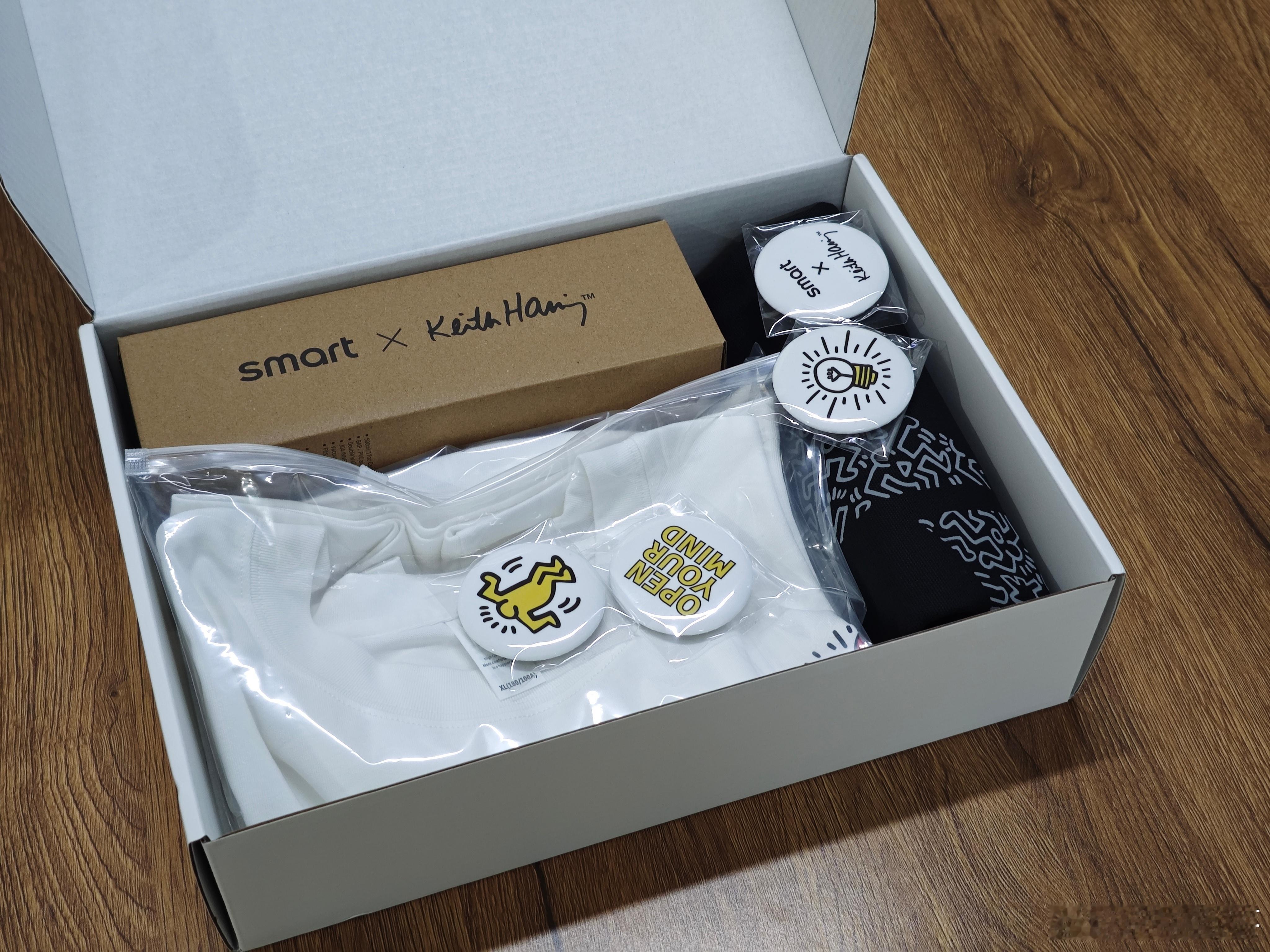 【抽奖】今日份开箱smart和美国街头绘画艺术家Keith Haring的联名礼盒不愧是车圈艺术咖的联动,手提袋、T恤、水杯、徽章都相当有艺术气息,关注+评论揪一位小伙伴送出去