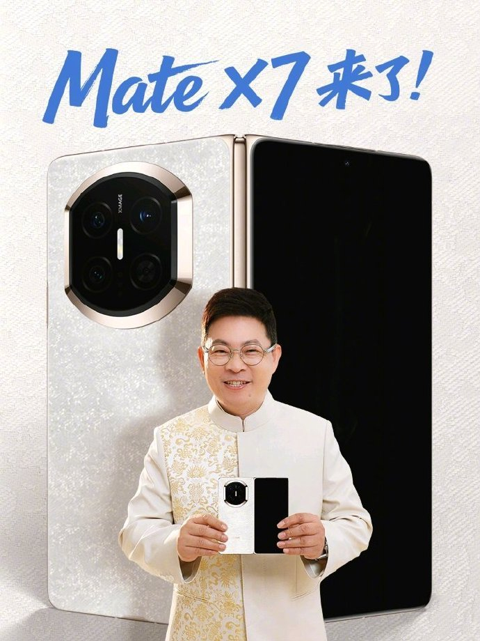 余承东真能忍,华为mateX7真机官宣。全新玄武架构炸裂,从桌上掉下去我忍了