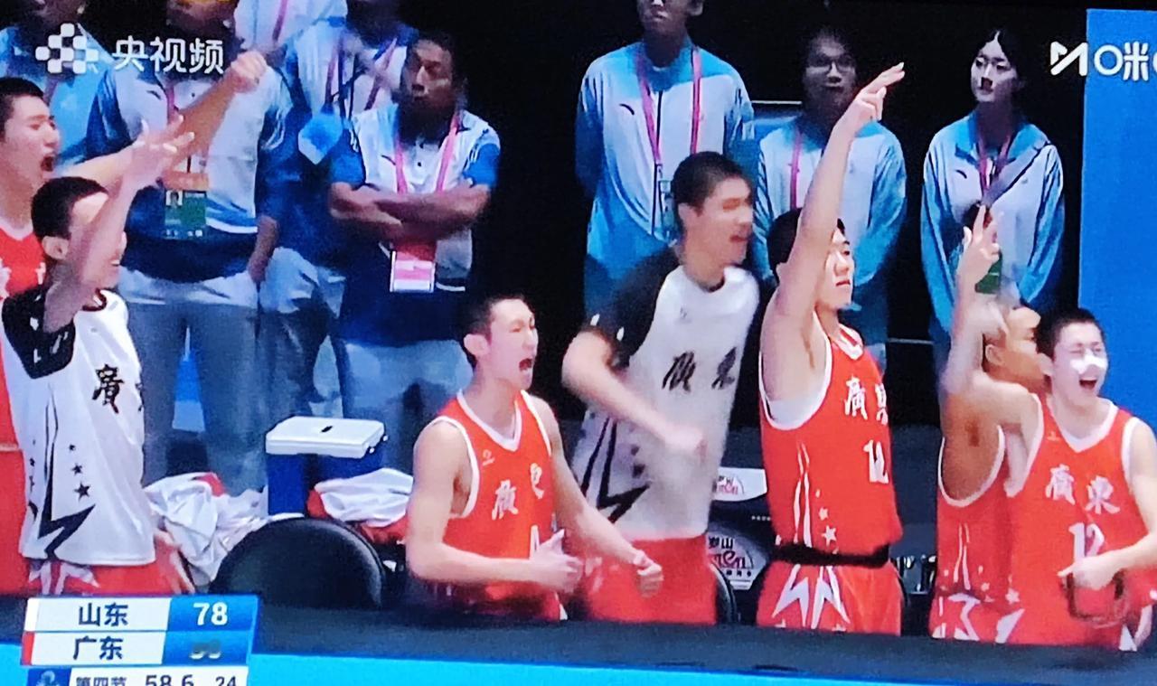 全运U18广东男篮85:78战胜山东队,真是可喜可贺。 寸头精神,板寸兄弟,这种统一发型,就如一家人。俗话说“打虎亲兄弟,上阵父子兵”就是这个意思,团结一心是本场取胜因素。 上半场广东落后一分,是因为王洪泽,何文炜受犯规困扰,双方都打得很紧张,最终胜利是靠顽强团结。 山东小伙子们也打得很不错,看到他们流泪样子,得安慰一番,这是他们成长的过程,胜不骄败不馁,表扬双方都充满活力的。