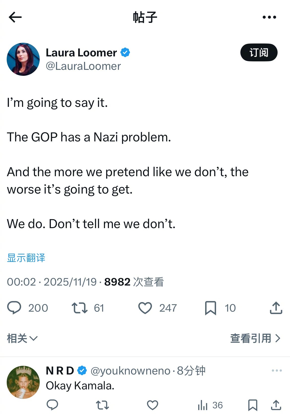 额,形势发展有点快。撸姐已经直指共和党纳粹了,还不许否认……评论区有人直接说她是哈里斯(民主党)