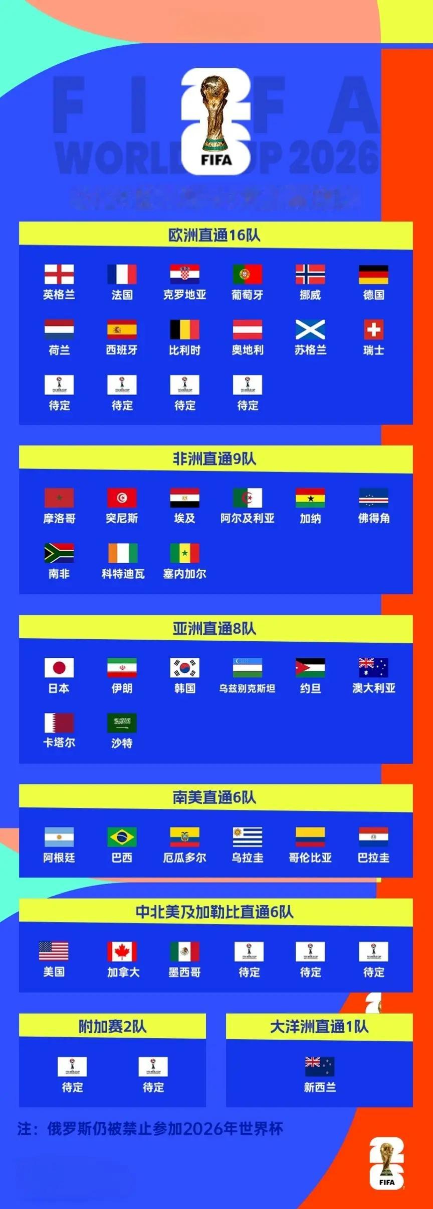 世预赛欧洲区落幕:12豪强直通世界杯 16队角逐附加赛名额北京时间11月19日凌晨,2026美加墨世界杯欧洲区预选赛小组赛全部收官。12支小组头名球队直接锁定世界杯正赛席位,16支球队将通过附加赛争夺剩余晋级名额。欧洲区12支直通球队名单出炉:德国、瑞士、苏格兰、法国、西班牙、葡萄牙、荷兰、奥地利、挪威、比利时、英格兰、克罗地亚携手晋级。附加赛16强阵容确定(含12支小组第二及4支欧国联成绩最优球队),分档结果如下:第一档:意大利、丹麦、土耳其、乌克兰第二档:波兰、威尔士、捷克、斯洛伐克第三档:爱尔兰、阿尔巴尼亚、波黑、科索沃第四档:瑞典、罗马尼亚、北马其顿、北爱尔兰截至目前,2026世界杯已确定39个正赛席位,剩余9席将通过后续附加赛决出。随着赛事扩军至48支球队,不少实力相对较弱的队伍得以跻身正赛,有观点认为这可能导致小组赛竞技质量下滑,沦为强队的“热身舞台”,而淘汰赛阶段或将成为本届世界杯真正的精彩开端。
