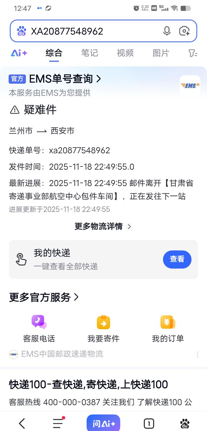 兰州市寄往陕西省西安市的邮件怎么这么慢? 从兰州寄往北京的快递都是一天到,兰州到西安的快递今天还看不到到西安的物流信息?邮政应该查一下究竟是怎么回事?我们客户希望能尽快把邮局快件交到收件人手里。