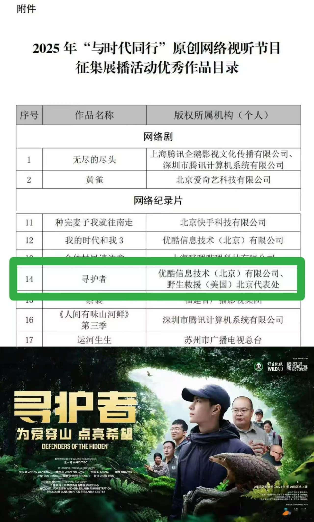 王一博寻护者获国家广电总局推荐,不错,