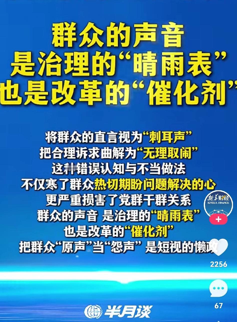 看图,说得好!媒体要当冲锋号! 群众的原声都在哪些方面: 教育教材、课后服务费, 医疗医保、看病就医, 住行房价、油价, 饮食食品安全, 农村粮食、养老等等! 这些方面媒体要多吹吹风, 治理和改革就能听到更多的群众原声,紧盯这些原声一件一件的办好,怨声就会越来越少,安居乐业、国泰民安、长治久安的大国梦就会来到!