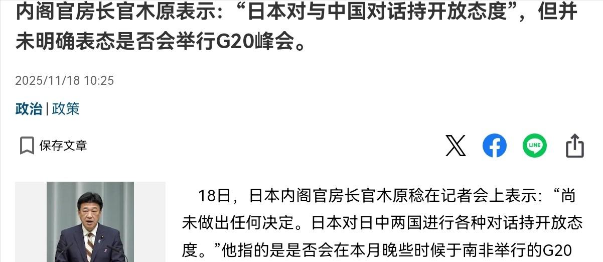 日本出来回应了! 在我们明确宣布G20峰会期间没有与高市早苗的会晤安排之后,日