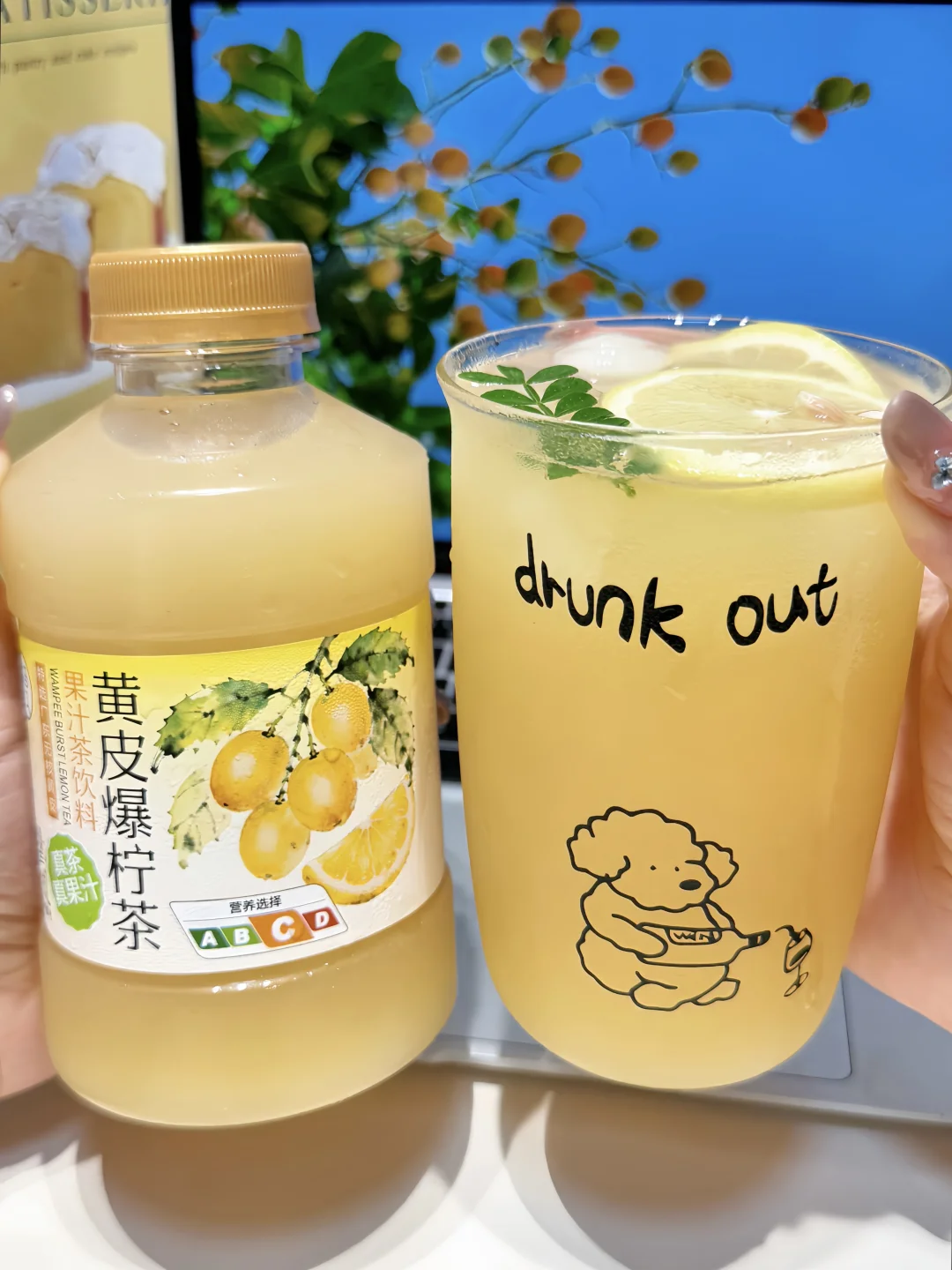逛盒马随手拿的黄皮爆柠茶!没想到一口惊艳! 浓浓的黄皮香好清新! 淡淡的柠檬味!入口酸甜清爽! 可以像我一样加点冰块!喝起来嘎嘎解腻! 果汁脑袋喝着太过瘾了! 姐妹们盒马看见一定要多囤点!!